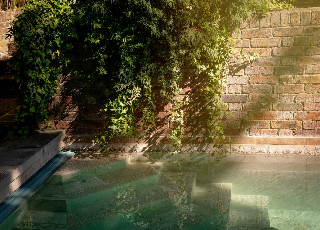 - A relaxing swimming pool where loungers are nestled among fragrant planting, and an antique Italian fountain offers the calming sound of trickling water.