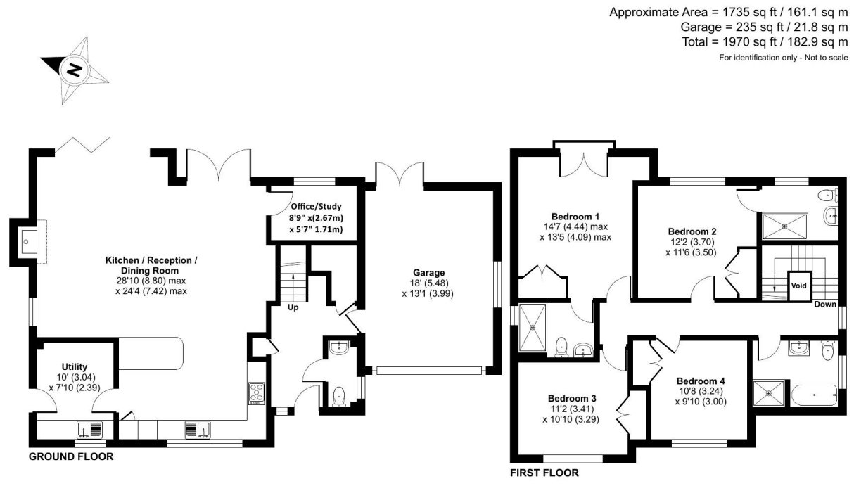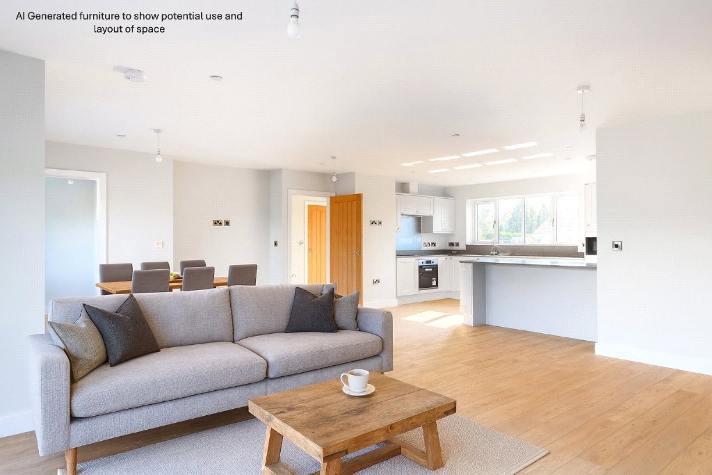 The accommodation is both spacious and versatile, designed with contemporary family life in mind. On the ground floor, a welcoming entrance hall leads to a stylish downstairs WC and provides internal access to the attached garage. There is also an open-plan kitchen, dining, and living area, utility room and a home office which could be used as a playroom or snug depending on your needs. Upstairs, there are four generous double bedrooms and three bathrooms.