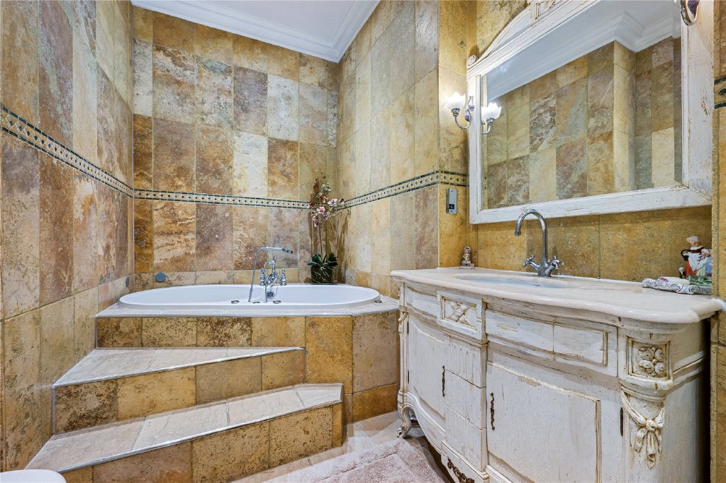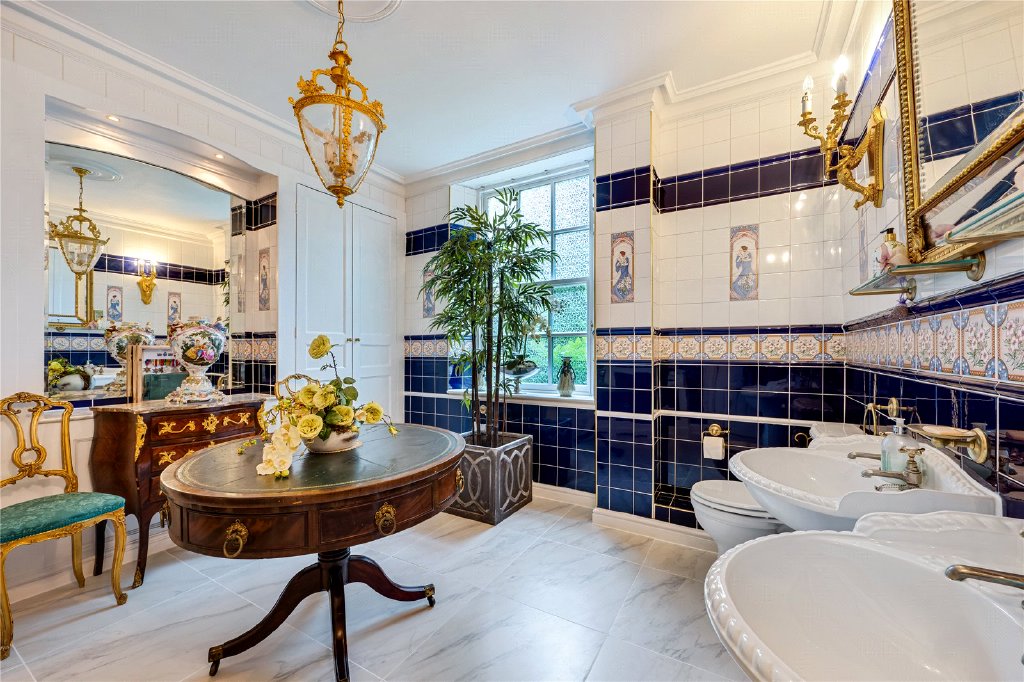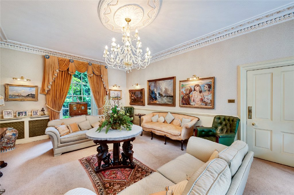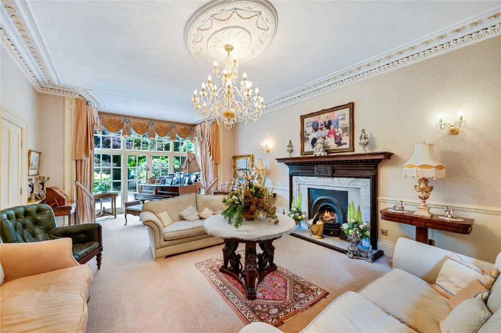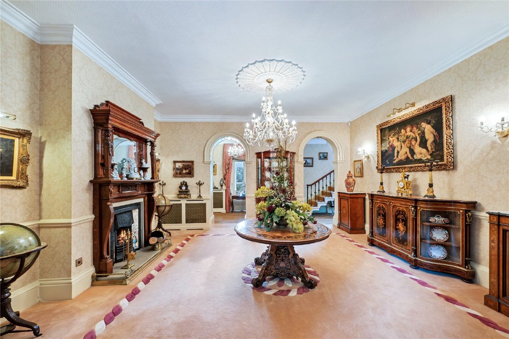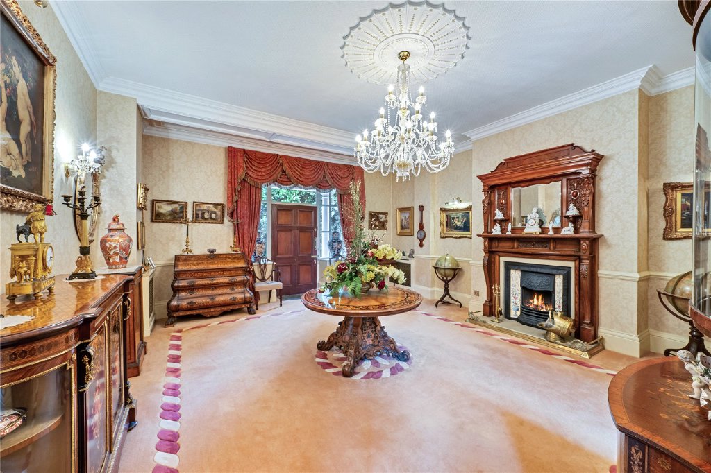 The reception hall, with its soaring ceilings and rear-facing windows, sets an impressive tone. Every detail — from the picture-lit corridors to the heritage-inspired finishes — has been thoughtfully curated. The formal living room enjoys dual-aspect garden views through a spectacular bay window, while the study offers a peaceful space for work or retreat.