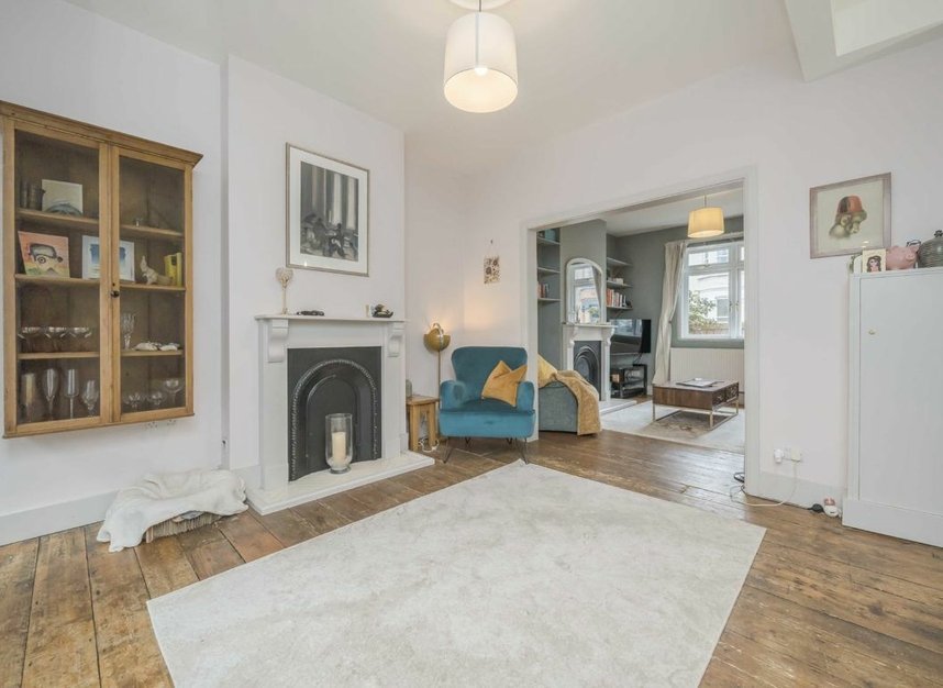 A large double reception room opens from the hallway and features original floorboards, feature fireplaces and a large window, creating a relaxing living space. The property is bright, spacious and benefits from a modern, recently extended kitchen complete with cloakroom and underfloor heating. Newly fitted sky lights ensure maximum light throughout.