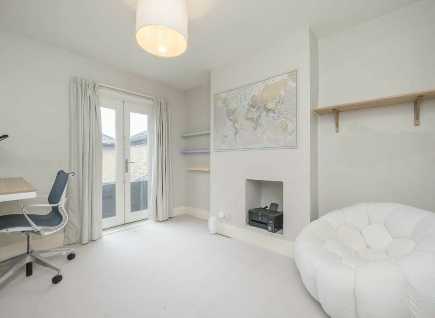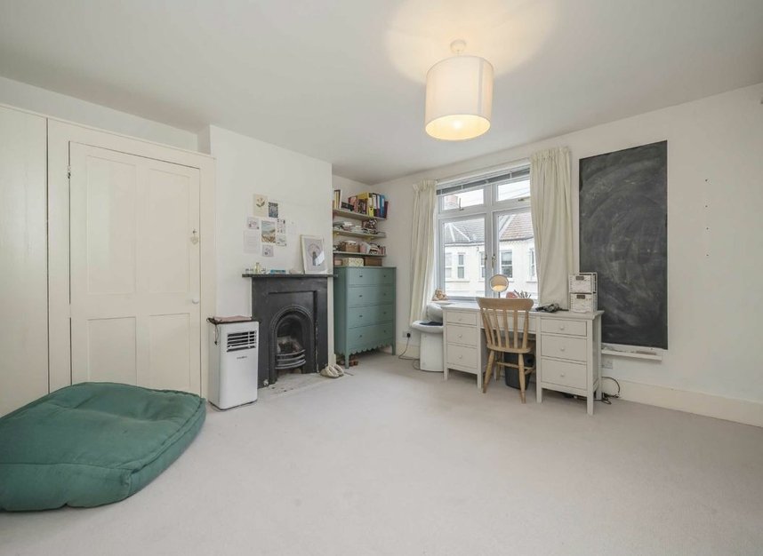 The first floor comprises two bedrooms and family bathroom. The bedrooms have original features, the largest of which has a built-in wardrobe. The second floor is dedicated to the main bedroom with views across rooftops to the nearby St. Paul's Park.