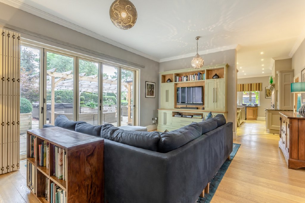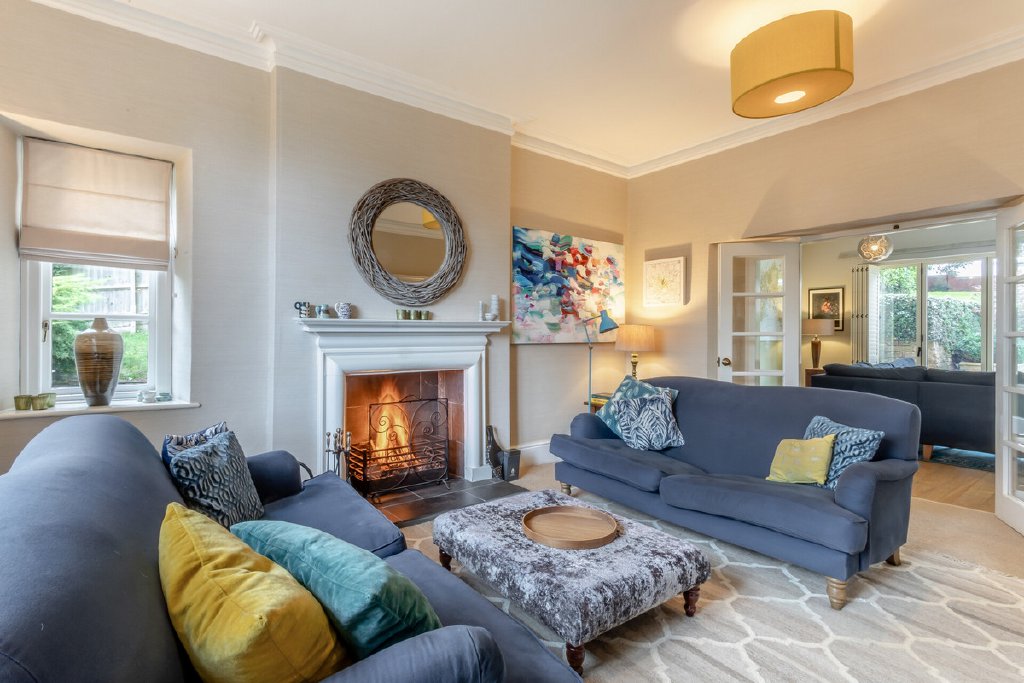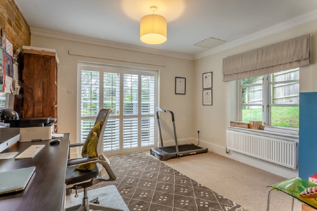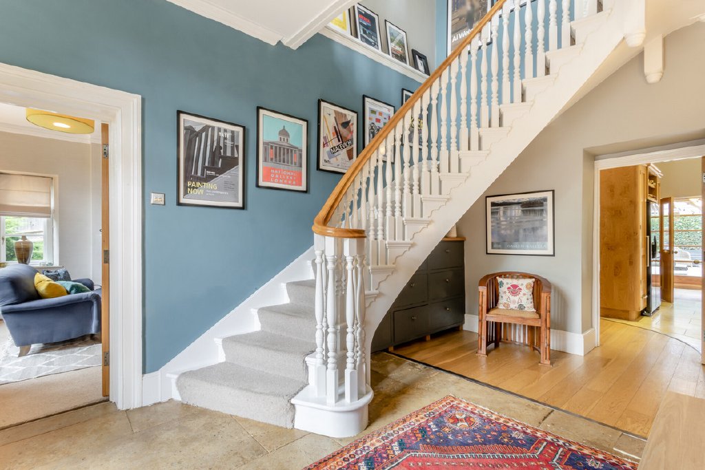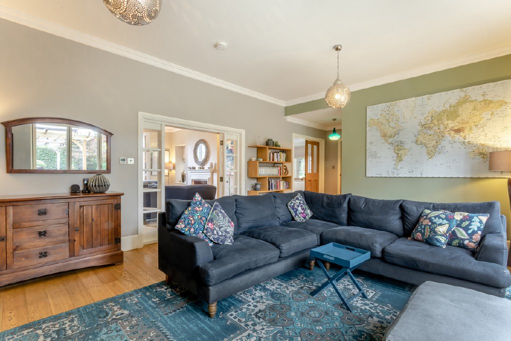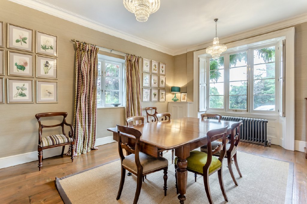 On entering you are greeted by a bright and welcoming reception hallway which is central to the house, it has a flagstone floor and a wonderful turned staircase leading to the upper floors. On the left is the drawing room which again is a beautifully bright room with a window to the front with original shutters and a working period fireplace, glazed doors to the rear of the room lead through to a superb family room. On the right of the entrance hall is a formal dining room which has original polished floorboards and windows to the front with original shutters plus a further window to the side, there is a door leading through to the kitchen. The kitchen is definitely the heart of this beautiful home and is fitted with an extensive range of bespoke hand built units by 'Harborough Kitchens'. There is a central island, granite work surfaces and quality integrated appliances. Adjacent to the kitchen is a superb family room which has bi-folding doors opening onto the sun terrace, a wood floor and a range of bespoke fitted cabinetry. A point of note is that the main reception rooms all flow seamlessly together making it ideal for family use. To the side of the house is a further sitting room/home office with an exposed stone wall and French doors that open to the front garden, a separate guest cloakroom and a sizeable utility/boot room with access to the rear garden.