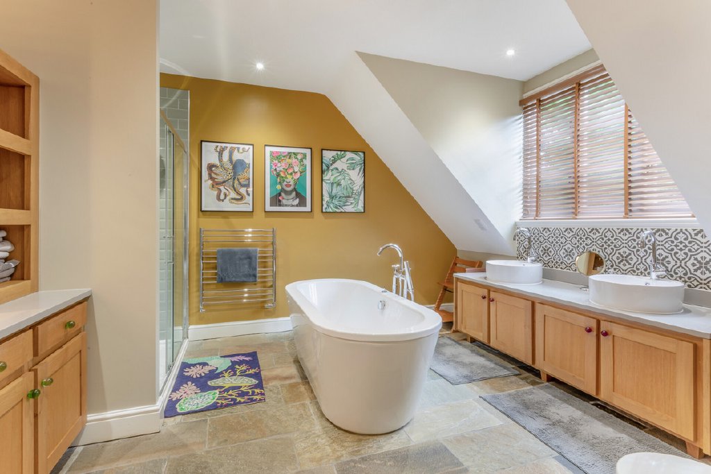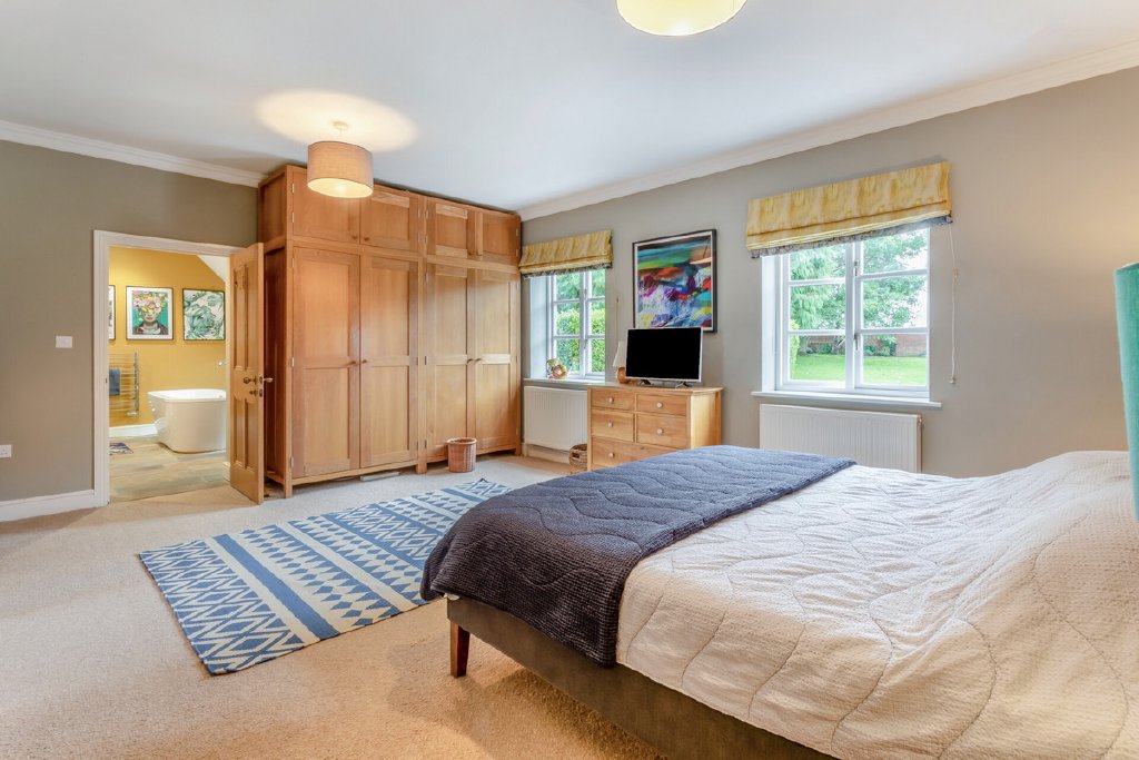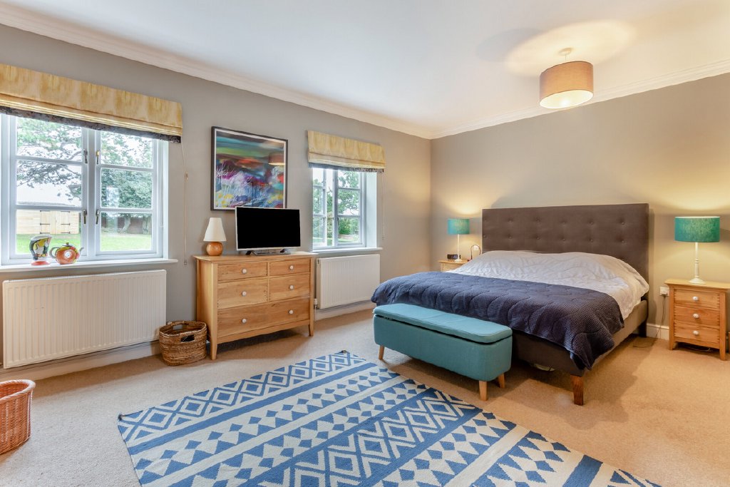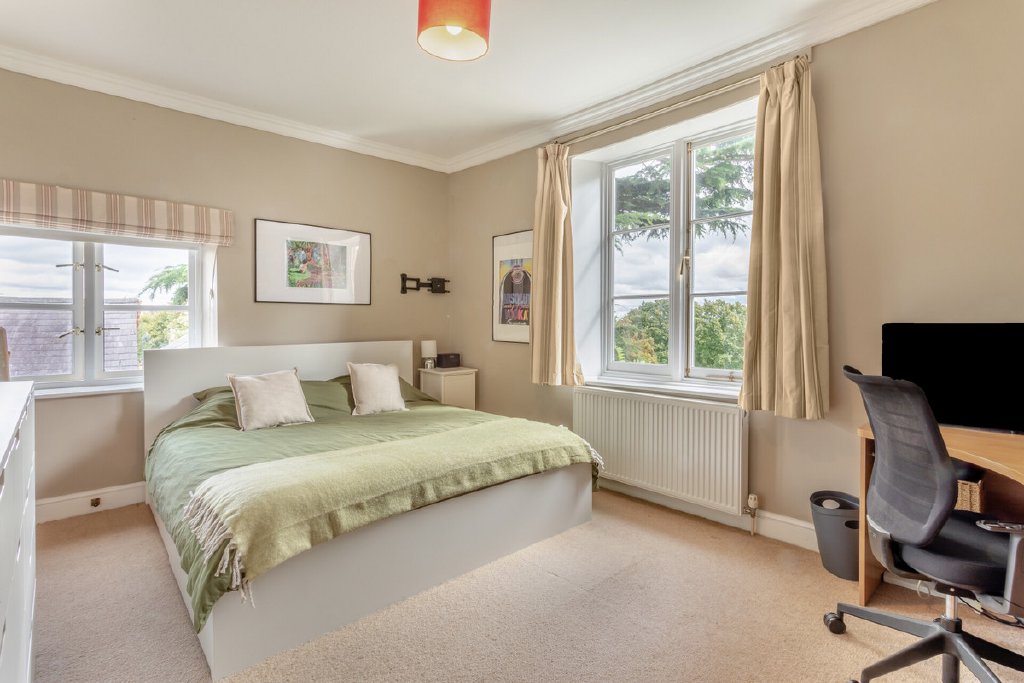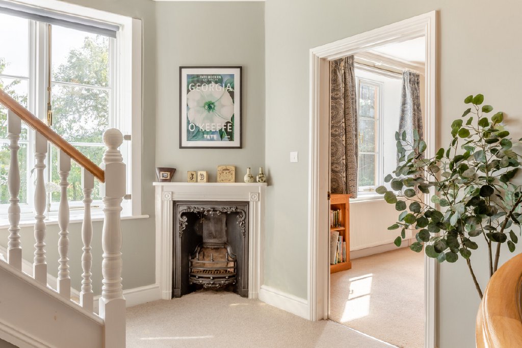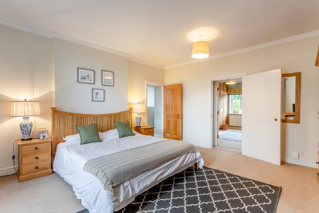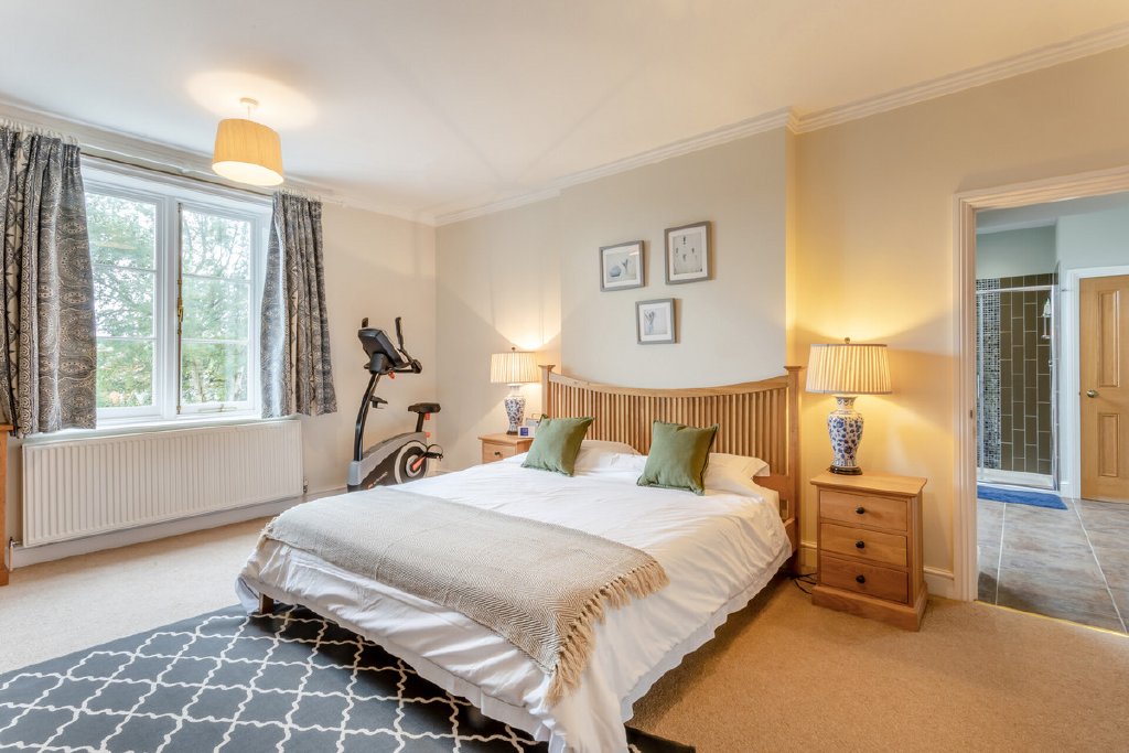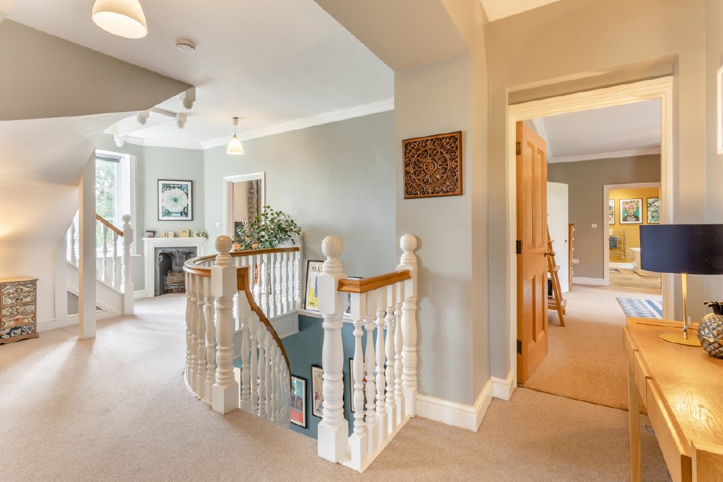 On the first floor there is a wide central landing with a period fireplace, airing/boiler cupboard and window to the front with far reaching open views. There are four double bedrooms on this floor. The main bedroom is a large room overlooking the rear gardens, it has fitted oak wardrobes and a luxurious with en-suite bathroom. The guest double bedroom is at the front of the house and is a bright spacious room with open views and a large en suite shower room. There are a further two double bedrooms both with far reaching views plus a smart family bathroom.