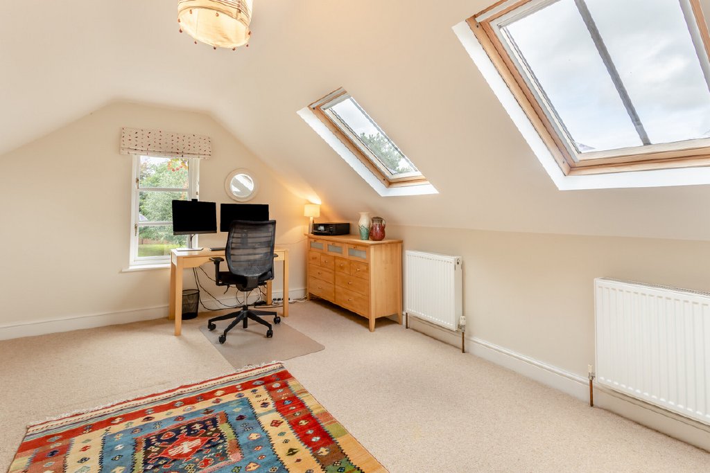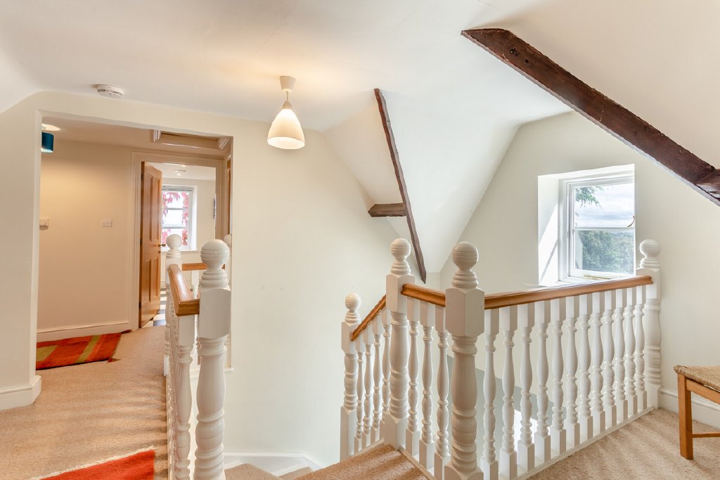 On the upper floor is another spacious landing area with built in linen cupboard. There are two double bedrooms, one at the side with access to a large loft room and another at the rear which has superb countryside views, there is also a modern shower room.