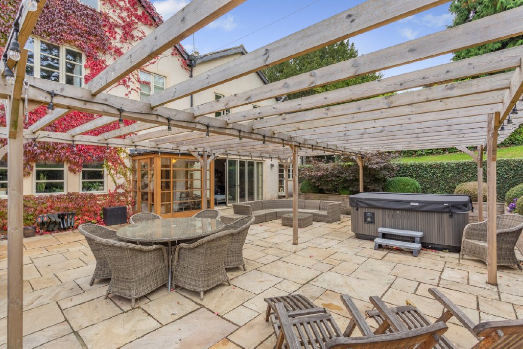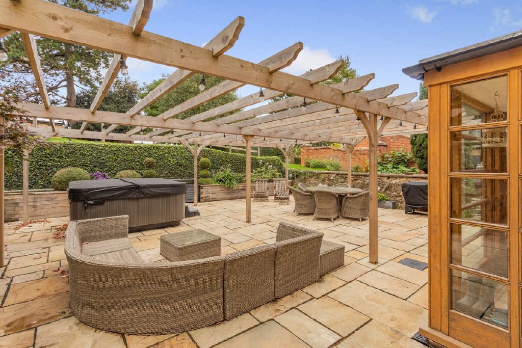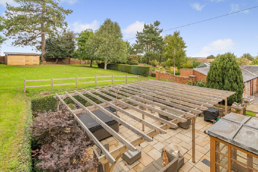 To the front of the house there is a sweeping gravelled carriage driveway with parking for at least five cars plus two EV car chargers. To the side a gate opens into a courtyard with a range of former stables now used as storage plus a workshop. The gardens to the rear of the house are walled with a large lawned area with many fruit trees that lead through to a former kitchen garden with vegetable and soft fruit beds and a greenhouse. To the rear of the house is a wonderful and private paved sun terrace with raised flowerbeds with an abundance of shrubs, topiary and flowers, the terrace has a pergola and is ideal for outside dining and entertaining.