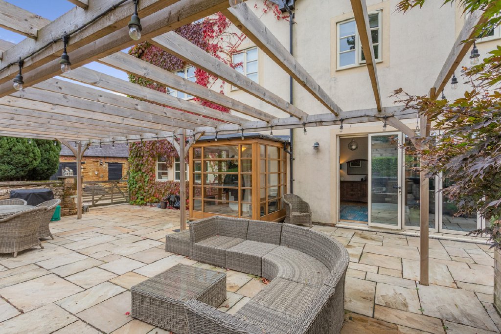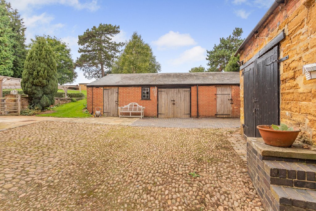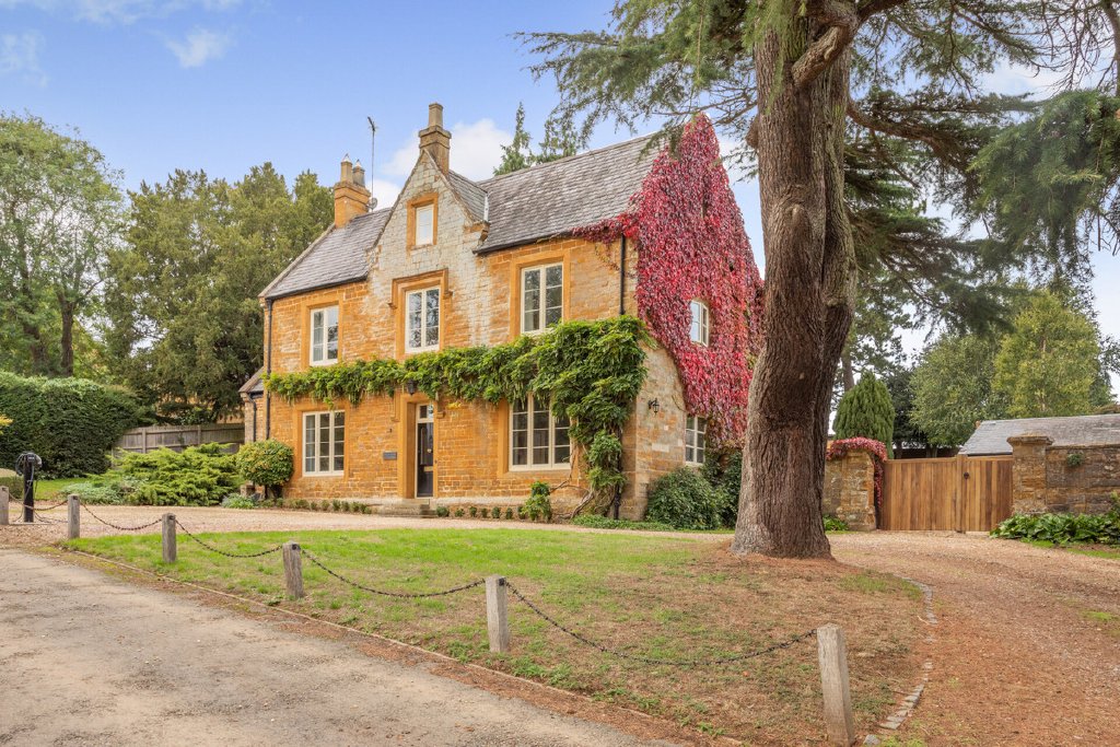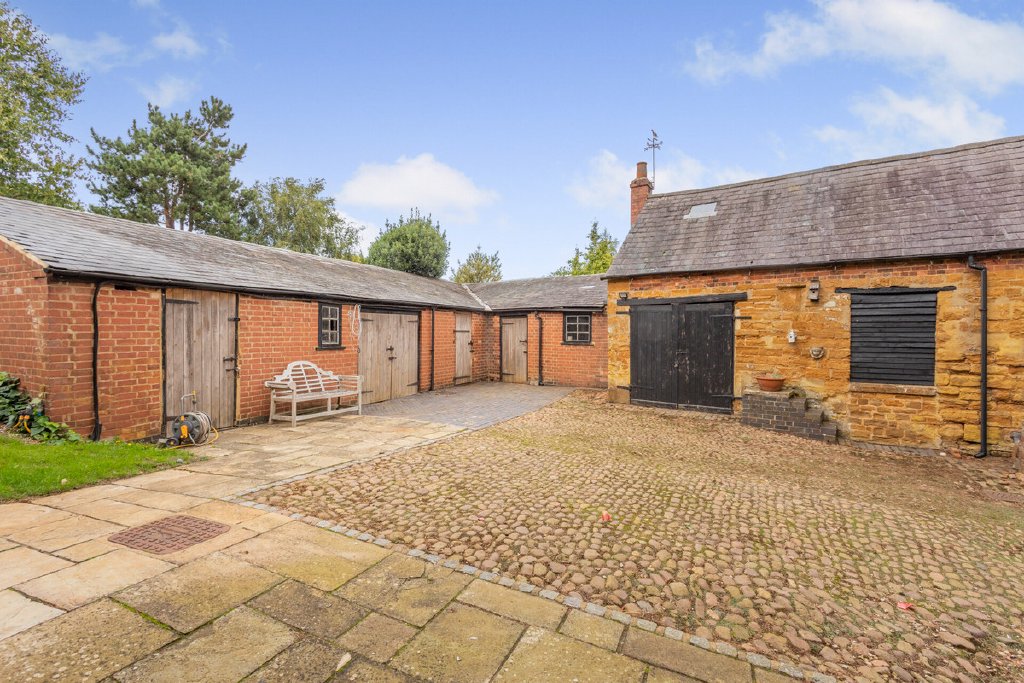 Creaton House is the quintessential, stone built, Georgian country house built circa 1760 which sits proudly overlooking the village green and set in grounds of approximately 0.75 acre. It has a classic facade covered in wisteria and Boston creeper and an imposing Cedar of Lebanon tree. A much loved family home for many years by the current owners it has been thoughtfully extended at the rear and a two storey side extension, it now combines both traditional and contemporary features seamlessly. There are many fine features including a lovely turned staircase, replacement period style windows and original fireplaces. The house is approached across the village green and has a sweeping in and out gravelled driveway which leads to a large courtyard area with a range superb stone outbuildings and workshop.