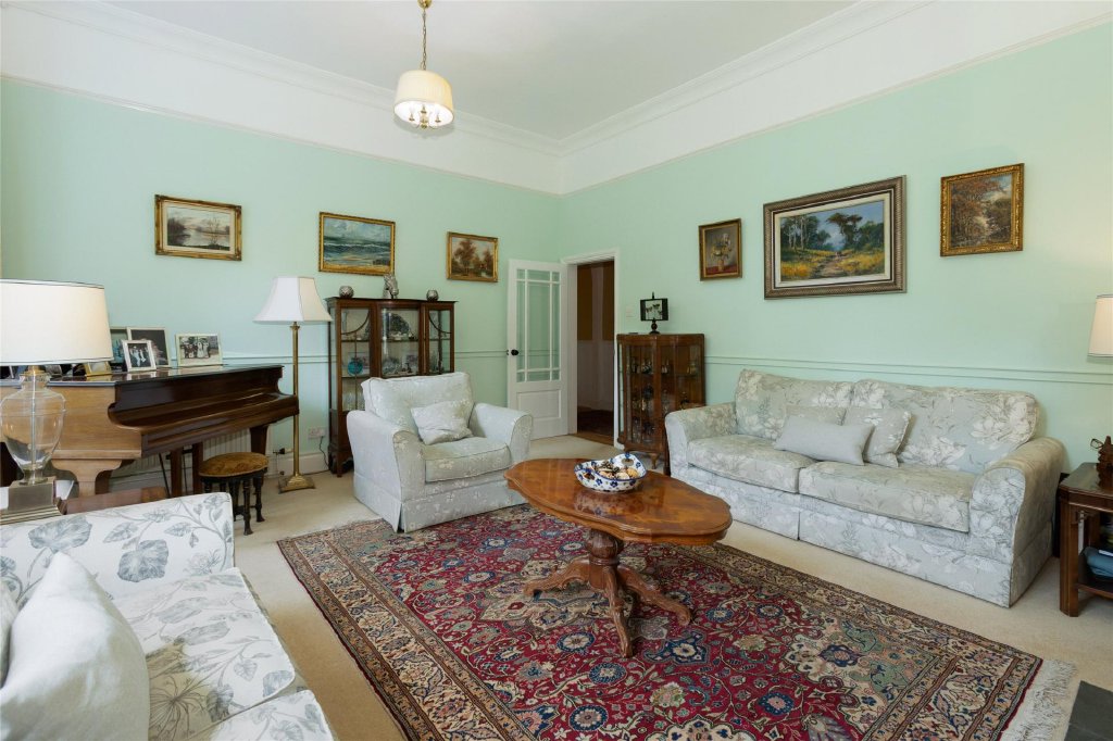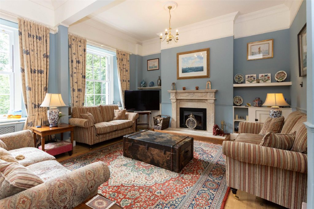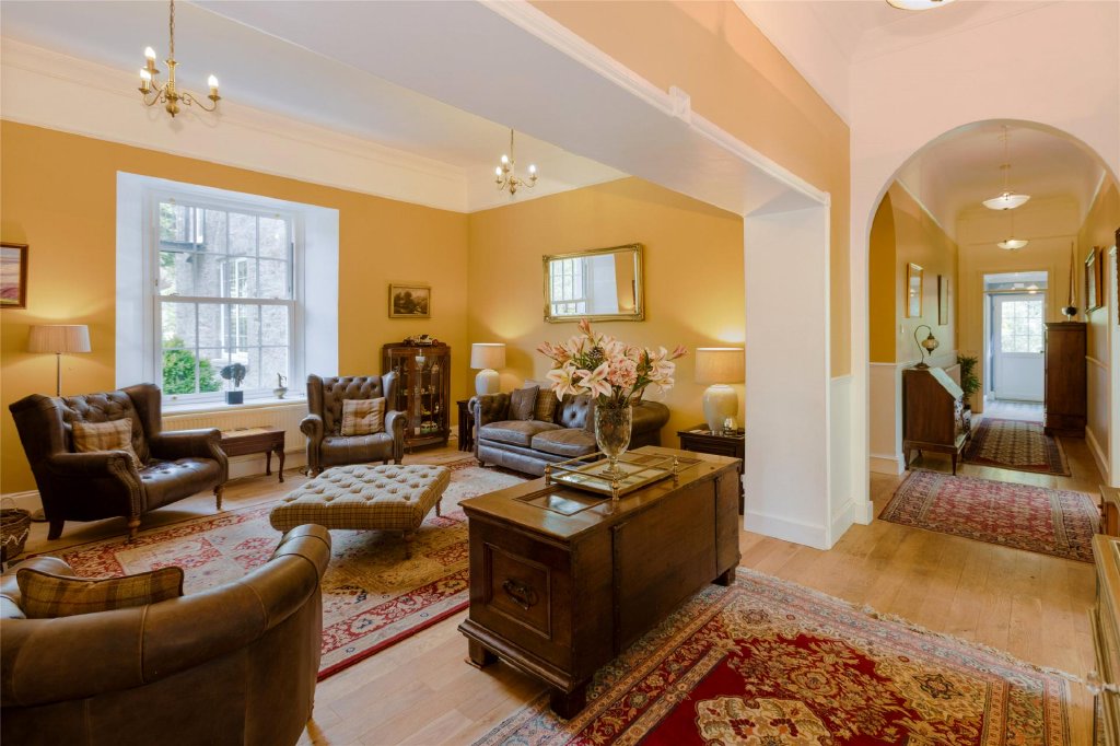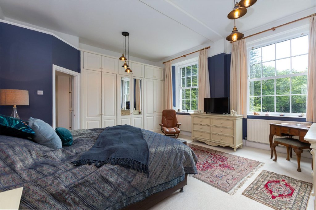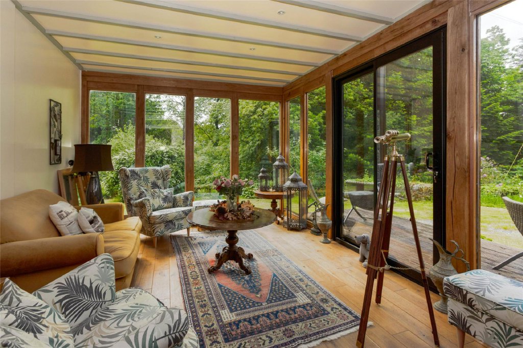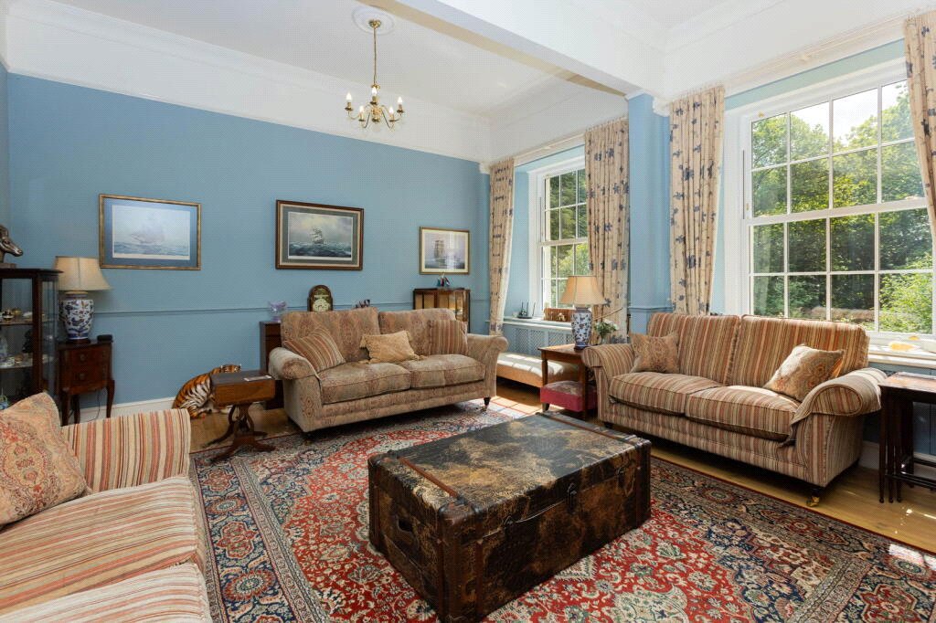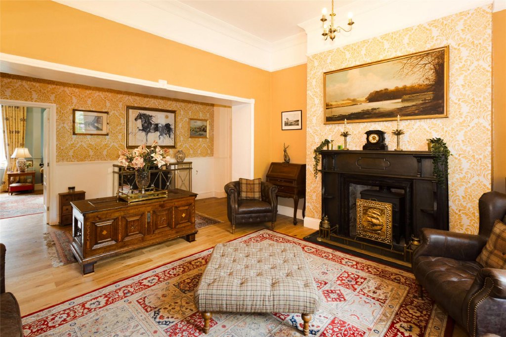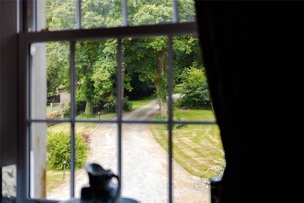 Entering through the original hallway you will find granite posts dating back to the home's origins, this hallway leads into the oak conservatory a bright space with views of the surrounding forestry. Moving back into the main hallway which flows into a series of beautiful rooms: a welcoming reception area, a lounge, and a morning room—all with high sash windows and working fireplaces that create a warm ambience.