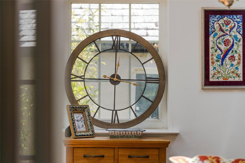 The staircase is another original feature, lit by a large window that fills the space with natural light. Upstairs, the annex bedroom offers another ideal setup for multi-generational living or a potential AirBnB rental. This spacious double bedroom includes an en-suite shower room, private entrance, and ample room to install a kitchenette, making it perfect for a fully self-contained studio annex.