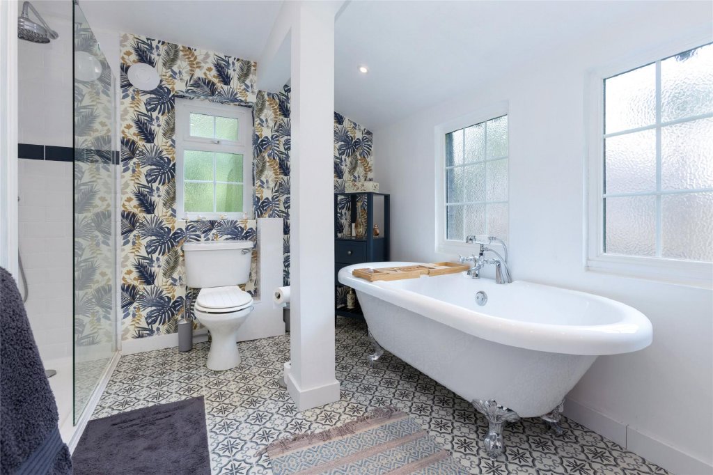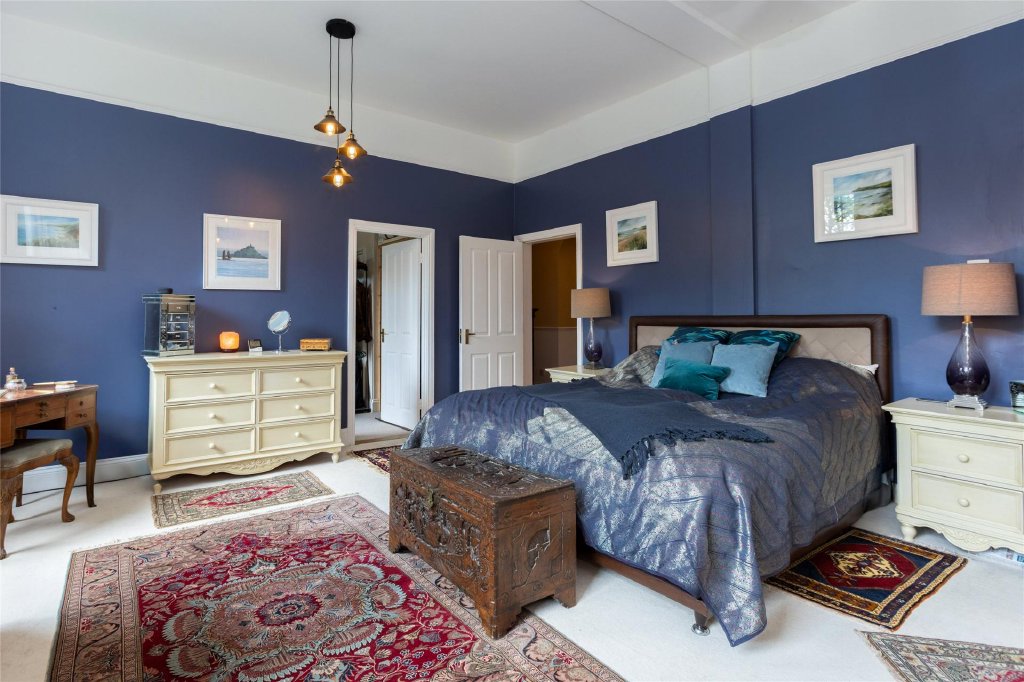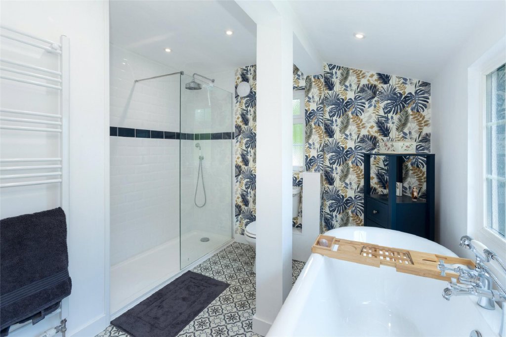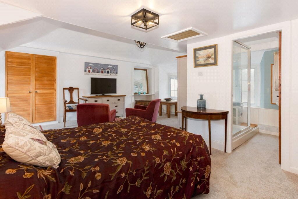 The luxurious master suite boasts a fully fitted, double-depth wardrobe, a newly renovated en-suite shower room, and a versatile adjoining space that could serve as a dressing room, nursery, or an additional single bedroom. Three more generously sized double bedrooms, one of which has another spacious en-suite, provide plenty of space for family or guests.
