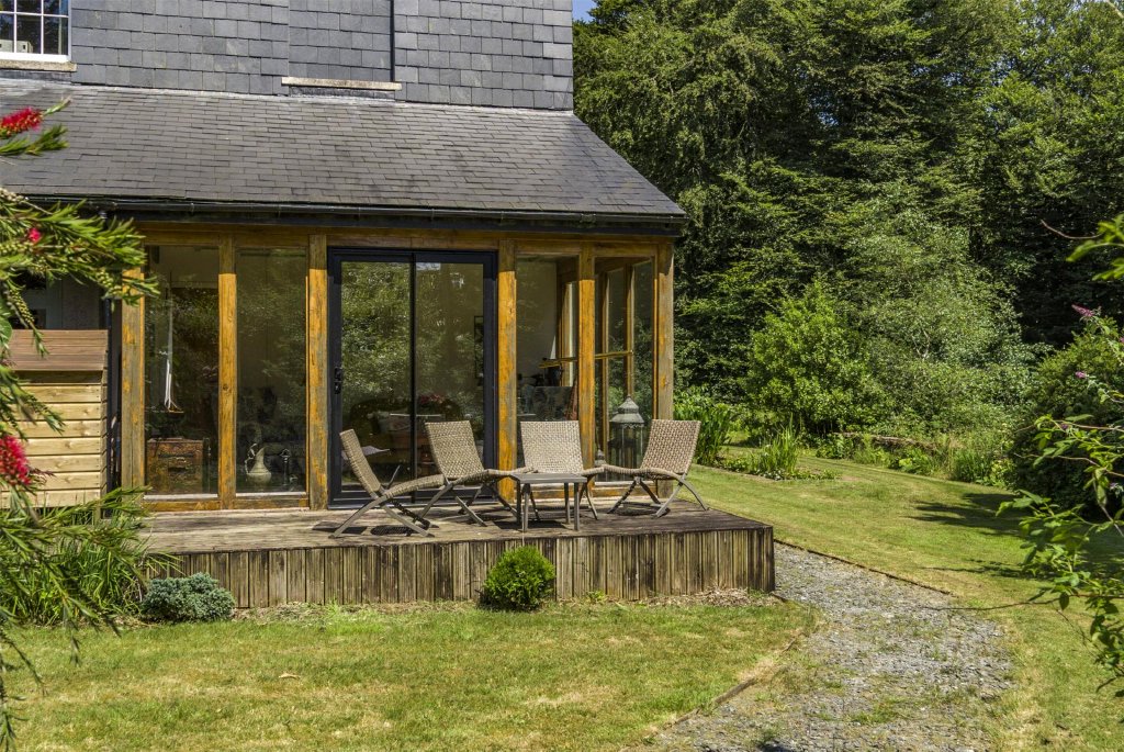 At the top of the drive lies a partly walled garden, previously an orchard, complete with two greenhouses and fruit cages, offering a delightful space for gardening enthusiasts. Surrounding the property is the woodland owned by Hawkmoor House. For those who love the outdoors, the house also connects via a private path directly to the Tamar Trails, offering 25 km of historic woodland paths to explore.