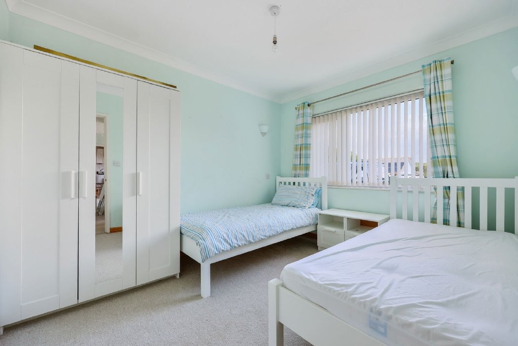 Adjacent to the Principle bedroom lies a wonderfully spacious double bedroom, currently outfitted with twin beds and an impressive free-standing wardrobe. This delightful room benefits from lovely views over the rear garden, creating a serene atmosphere.
