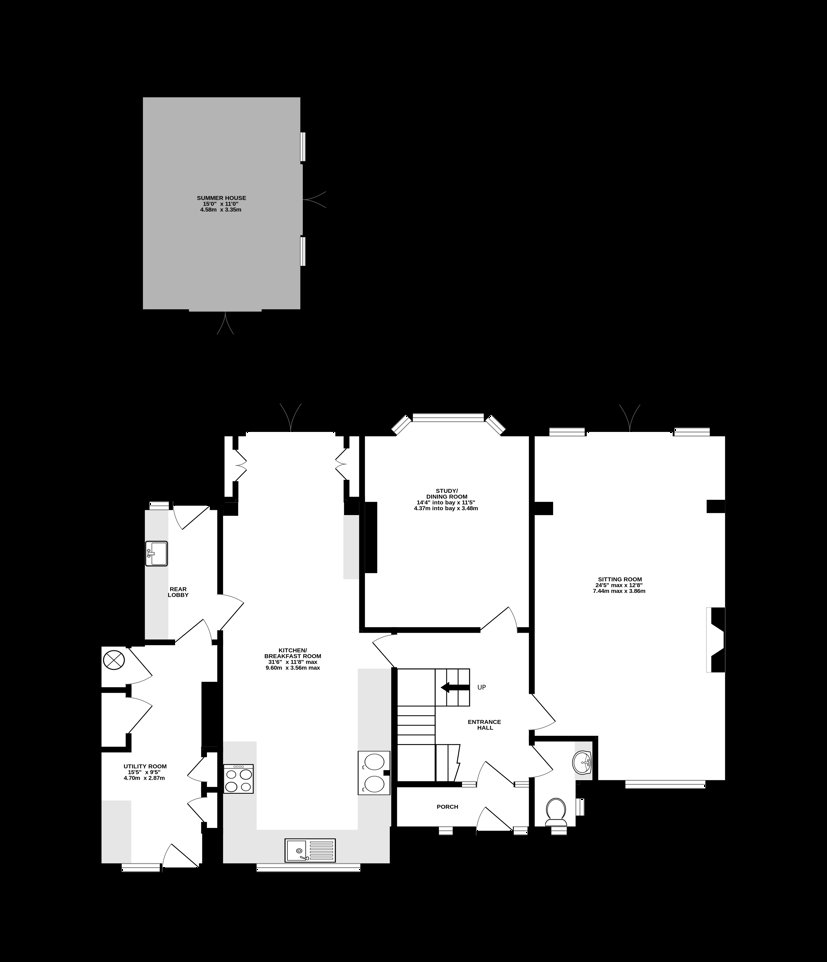 Upon entering, you are welcomed into a porch that leads to a stunning central open hallway with doors to all main ground-floor rooms, a cloakroom and stairs leading to the first floor.