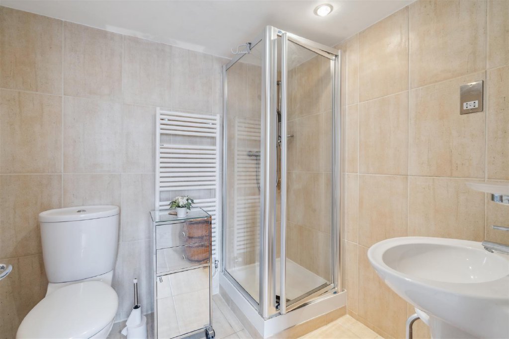 Cloakroom - Quite a considerable space and could easily accommodate a shower if required. The cloakroom is fully tiled with a wash basin, WC, extractor fan and radiator.