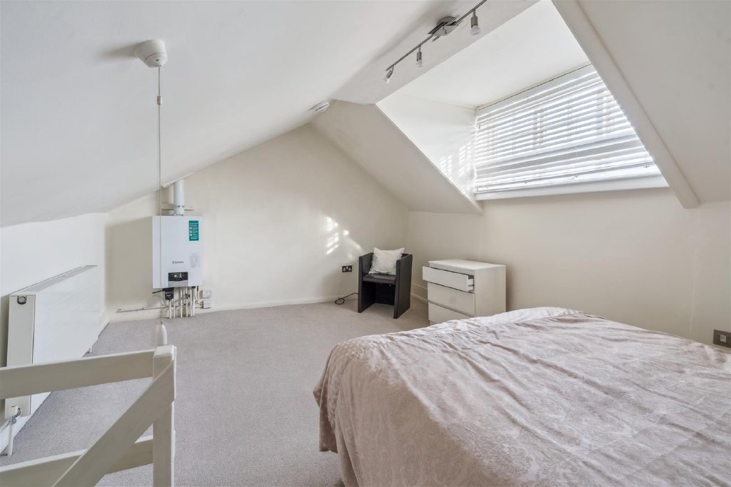Bedroom Three - This bedroom is located on the second floor with windows overlooking the HIgh Street. The central heating boiler is located in this room and there is an