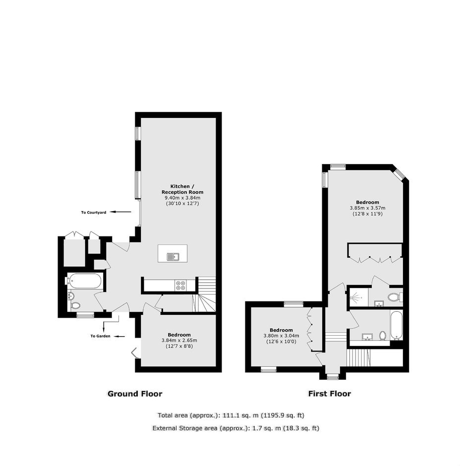 On the ground floor, a versatile double bedroom opens directly onto a secluded courtyard garden. Ideal as a guest room, home office, or snug, it also benefits from use of a contemporary family bathroom.