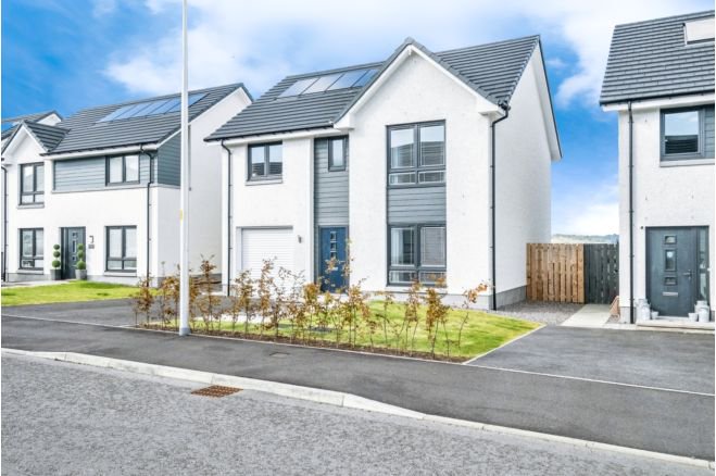 Fantastic opportunity to purchase this immaculate four bedroom detached home in the sought after Fairview Heights development in Slackbuie, Inverness. Accommodation comprises ~ Entrance hall leading to the living room on your right. This bright room features neutral decor and versatile family living space . Further down the hall is the open plan kitchen/dining room with patio door access onto the rear garden. The Ashley Ann kitchen features ample white base and wall units with contrasting grey worktop with built in underlighting. Integrated appliances include fridge freezer, dishwasher, electric double oven and gas hob. A good sized dining area features in front of the double patio doors where you can fully appreciate the fantastic views . Off the dining area is a utility room with an integral washing machine leading to a W.C. with an access door to the integral garage. Also on the ground floor is an under stair cupboard providing extra storage. Recessed LED lighting features throughout. On the first floor is the family bathroom with over bath shower and attractive marble effect tiled splash back and heated chrome towel rail. There are 3 double bedrooms and a good sized single bedroom. All the double bedrooms feature built in mirrored double wardrobes. The main bedroom benefits from an en-suite shower room with tiled splash back and heated chrome towel rail and recessed LED lighting. A separate heating control allows for split level temperature control. A linen cupboard also features on the landing. To the front of the property the garden is mainly laid to lawn and bound by a low beech hedge with the driveway adjacent for two cars in front of the garage. To the rear is a large enclosed garden again mainly laid to lawn with a patio area at the top taking advantage of the view. This property benefits from many quality features and is move in ready .