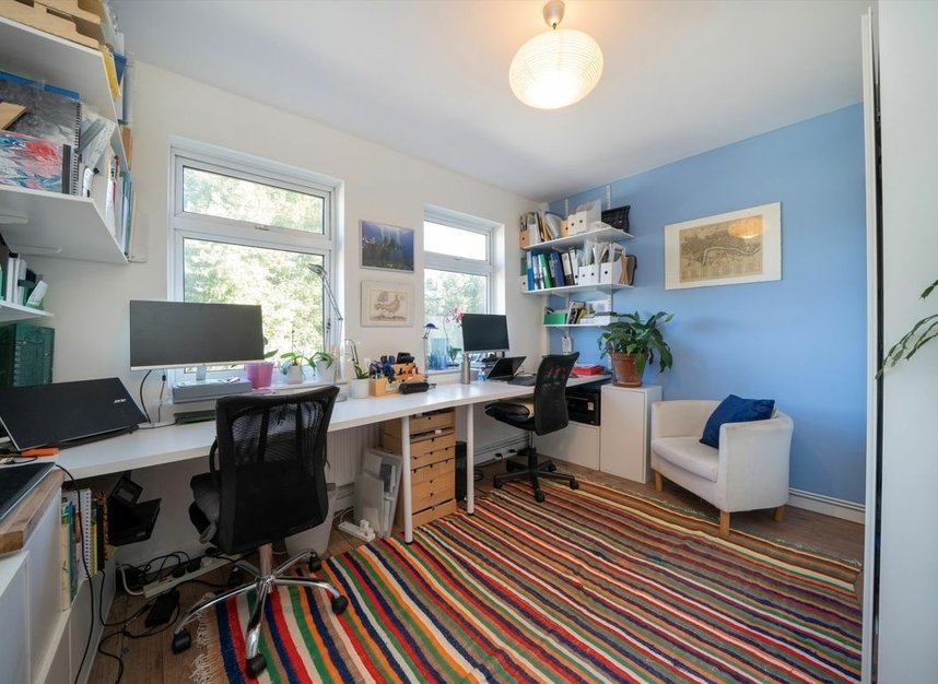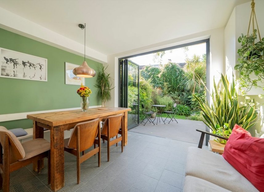 A three bedroom, two bathroom, terraced house with a south facing garden. The home measures over 1,100 sq ft and has been completely renovated throughout to a high standard by its architect owners with wooden floors, open plan kitchen, bi-fold doors, underfloor heating and solar panels.