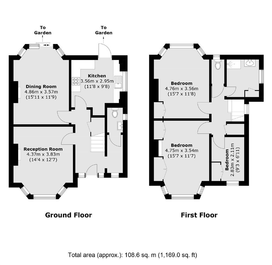 Upstairs, the property offers three well-proportioned bedrooms. The principal bedroom enjoys views over the garden and Ashridge Crescent. The family bathroom, with separate WC if applicable, completes the first floor.