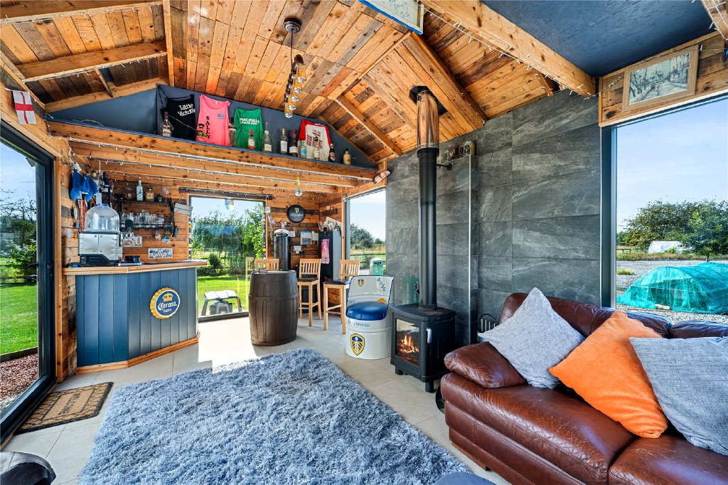 Outside, the property is set on a generous and private plot. A long private gravel driveway offers ample off-street parking, while the professionally landscaped garden features mature planting, lawns, and a patio area directly off the kitchen dining room, ideal for al-fresco dining or entertaining. Or walk to the separate large decked seating area with a pergola, which provides another peaceful spot to enjoy the countryside views. A standout feature is the garden room, currently used as a bar/games room, a great retreat for older children or socialising. Formerly a garage, this space could easily be converted back if required. This brilliant home not only offers generous internal accommodation and outdoor space, but also the rare advantage of privacy and seclusion.