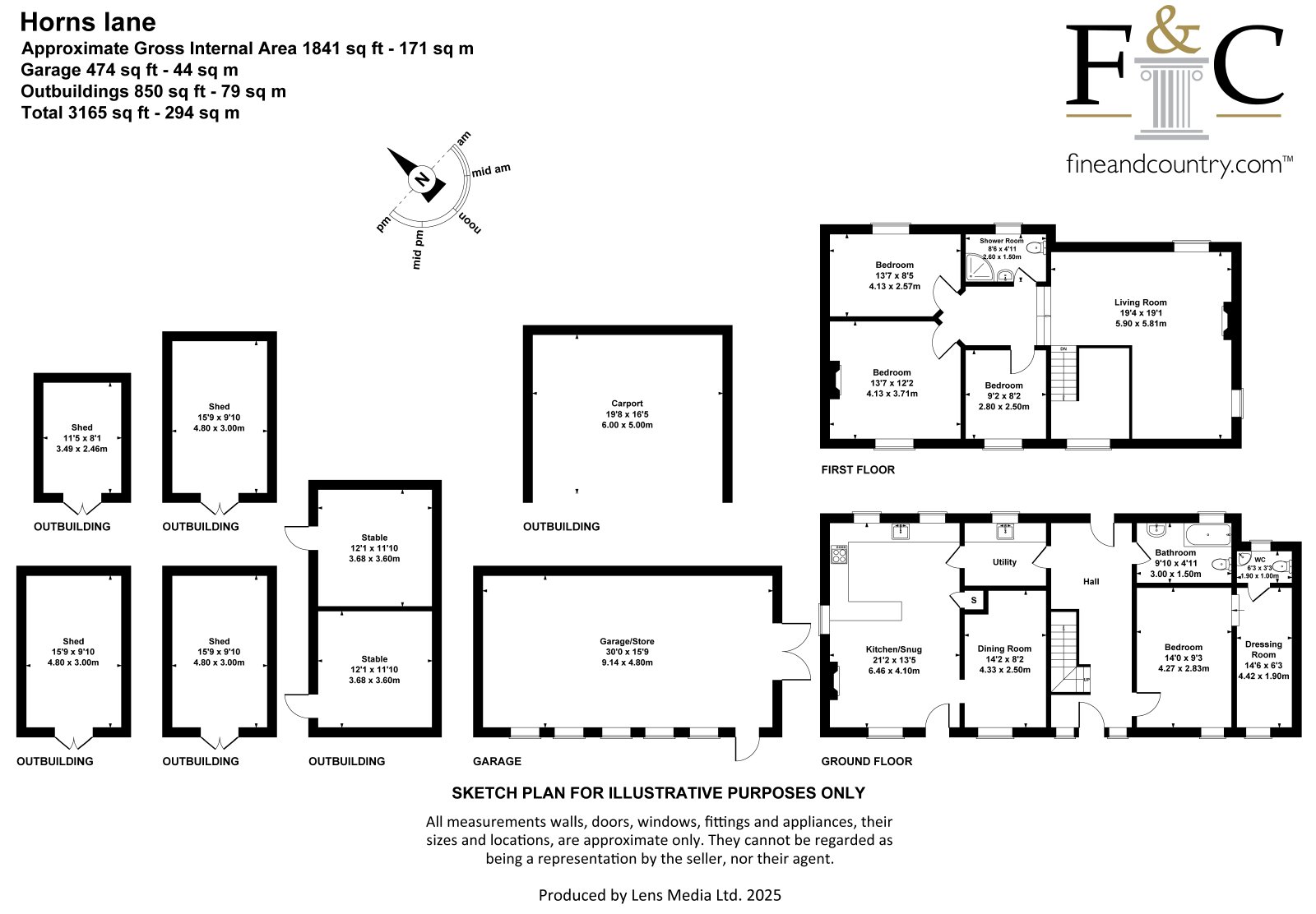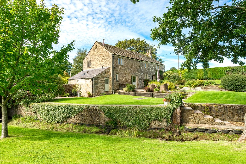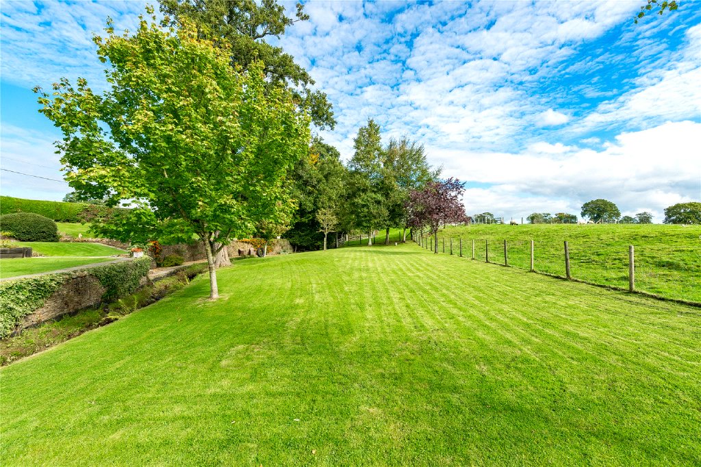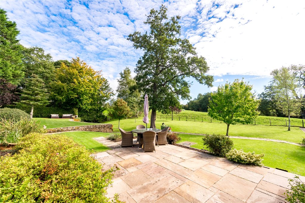 The property is approached via a sweeping gated stone-chipped driveway, bordered by a lawn and large koi pond, and continues past a range of substantial outbuildings. These include two stables, a detached workshop ideal as a home office or gym, a two-bay car port and additional garden stores. The rear garden is a peaceful haven, with tiered lawns, a large patio and mature planting of trees, shrubs and hedging. A gentle brook meanders through the grounds, enhancing the sense of tranquillity, while views extend over the surrounding farmland.