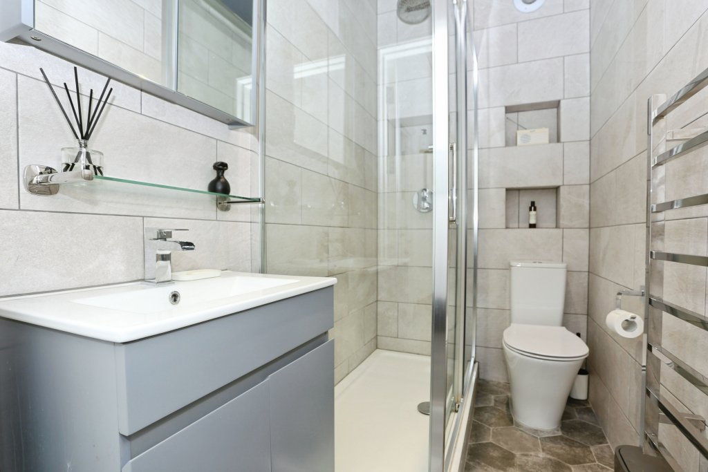 CHAIN FREE A Handsome, Spacious, and Stylishly Refurbished Home This deceptively spacious three-bedroom end-terrace has been refurbished to an exceptional standard, combining intelligent design with elegant finishing touches. Finished to a luxury order throughout, it’s a home that must be seen to be fully appreciated. From the moment you approach the property with its impressive entrance and kerbside appeal to its bright and spacious interior, this property isn’t just about style — it’s been thoughtfully fitted with a host of modern systems to maximise comfort, convenience, and peace of mind: • A whole-house water softener, reducing limescale build-up in plumbing, appliances, and on surfaces. • Zoned underfloor heating in the upstairs hallway, main bedroom, and second bedroom — each zone individually controlled. • Gas central heating on the ground floor, delivered via sleek, vertical contemporary radiators. • A German-engineered boiler, less than two years old, with the balance of a 10-year warranty remaining. • An entrance hall skylight, providing the hallway with natural light. • Bi-fold doors opening onto the garden, creating a seamless connection between indoor and outdoor living. The garden itself has been designed with the same attention to detail. Beautifully landscaped in a contemporary style, it features paved patio and decked entertaining areas, modern slatted fencing, raised planting beds, carefully curated shrub and flower schemes, and even a sleek pond feature. Inside, solid oak flooring runs throughout the ground floor, with premium finishes upstairs enhancing the home’s tactile quality. Practical built-ins, including cupboards housing the boiler and washing machine, under-stairs storage, and integrated kitchen electrics, ensure the layout is efficient, uncluttered, and family-friendly. This is a home where every detail has been considered — balancing functionality with contemporary elegance.