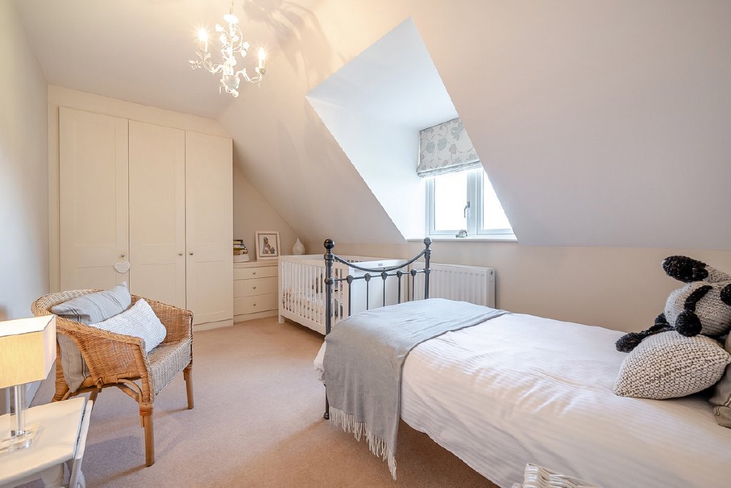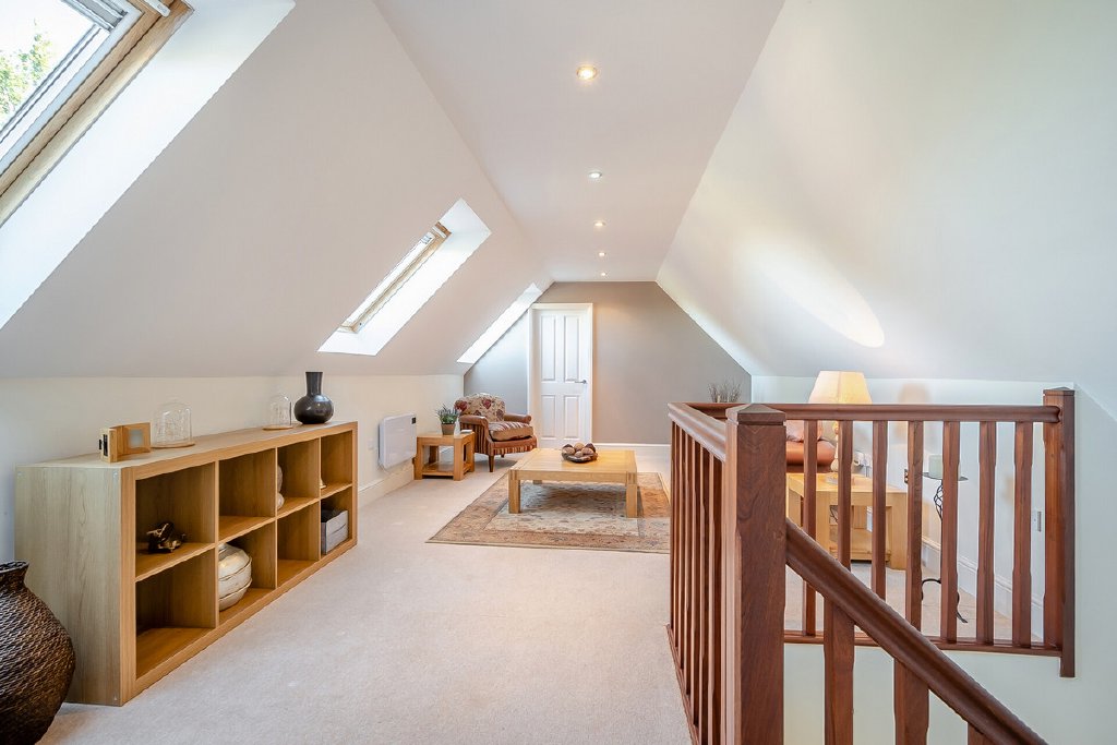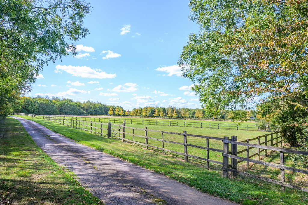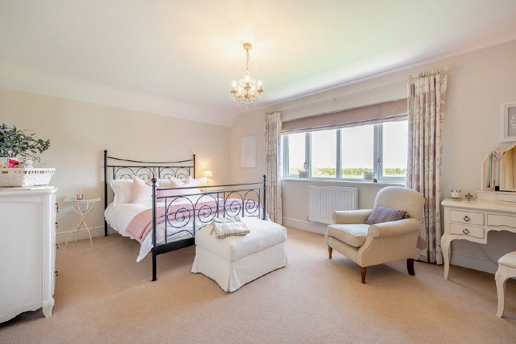 On the first floor there is a wide and spacious central galleried landing with access to the five double bedrooms. The main bedroom is a lovely dual aspect room with two Juliet balconies to the side allowing views over the garden and paddock plus a window to the front overlooking the driveway, there is dressing area with fitted wardrobes and superbly appointed en-suite shower room. To the front of the house is a guest double bedroom also with fitted wardrobes and an en-suite shower room. There are a further three double bedrooms at the rear of the house with views over the gardens and a luxurious family bathroom.
