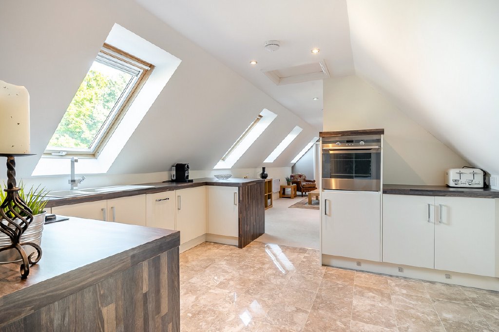 Across the circular drive, there is a detached barn style garage block with a double garage with electric doors plus a separate open fronted two car garage. Above the garage block and accessed from a central hallway is a large self-contained annex ideal for a dependent relative, teenager or luxurious guest suite. It has a superb open plan reception room and well fitted modern kitchen with integrated appliances, a bright double bedroom with en suite shower room and a large storage room.