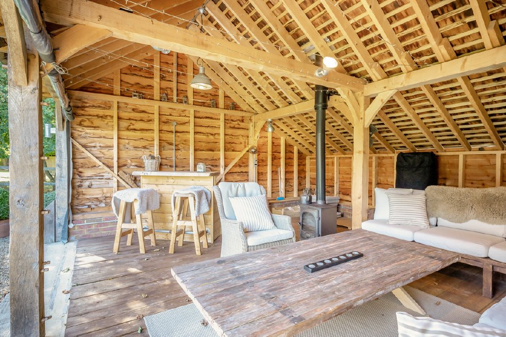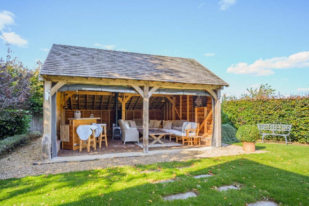 The gardens of Luddington Lodge have been beautifully landscaped and planted and designed. The whole garden is bordered with mature trees and beech hedges affording privacy. There are several large paved terraces that catch the sun all through the day and can be accessed from all the main rooms of the house, great for entertaining. The majority of the garden is lawn with shrubberies and flower beds, a Scotts summer house and an oak-framed party barn with terrace. Behind the garage/annex block is a small orchard, vegetable garden, wood store and shed and access to the fenced paddock. All in all the grounds extend to approximately 1.45 acres.