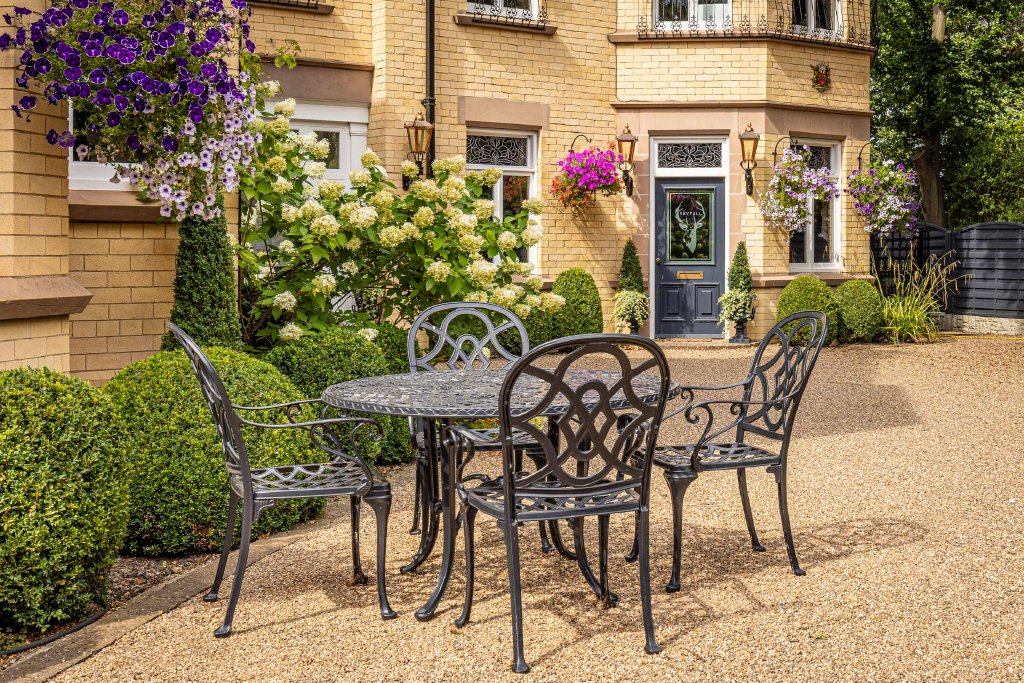 The beautifully landscaped grounds have been well conceived and provide a tranquil oasis from the outside world with established trees flanking the boundaries. A new addition of a ‘carriage’ driveway immediately adds to the grandeur upon arrival and leads to the exquisitely designed gardens, seeing mature planting and manicured lawns. A bespoke sculpture and themed boxed hedging give a direct nod to the opening credits of the James Bond films, again adding to the overall drama of what is on offer at Skyfall.