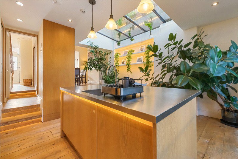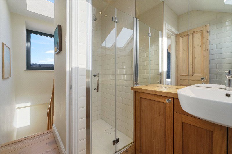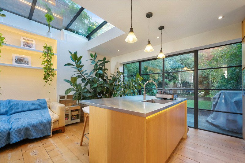 An imposing and beautifully presented five-bedroom Victorian residence, spanning over 2,100 sq ft, situated on the highly sought-after Powerscroft Road. Blending period charm with contemporary design, this exceptional home offers generous living space, ideal for modern family life. As you enter, you’re welcomed by a grand double reception and dining room, featuring original sash windows with shutters, high ceilings, wood flooring, and an ornate fireplace – perfect for both relaxation and entertaining guests. Steps lead down to a stunning bespoke kitchen, complete with ambient lighting, stainless steel worktops, a Quooker water tap, high-end integrated appliances, and reclaimed Georgian floorboards. Elegant Crittall doors open onto a landscaped rear garden with mature planting, raised beds, offering a sense of privacy and tranquillity. A guest WC and a basement provide added practicality, with the basement offering excellent additional storage. On the first floor, you'll find a stylish family bathroom, boasting both a bath from the Cast Iron Bath Company and a walk-in shower, alongside custom built cabinetry that cleverly conceals the washer, dryer, boiler, and additional storage. Two spacious double bedrooms are located on this level, including one currently used as a second reception room, complete with a feature fireplace and original Victorian proportions. The second floor offers two further double bedrooms, including a generous principal room with floor-to-ceiling bespoke wardrobes, both offer excellent natural light. At the top of the house, a beautifully designed loft conversion provides a fifth double bedroom, excellent eaves storage, and a sleek contemporary shower room – making it ideal for guests, or a luxurious principal suite.