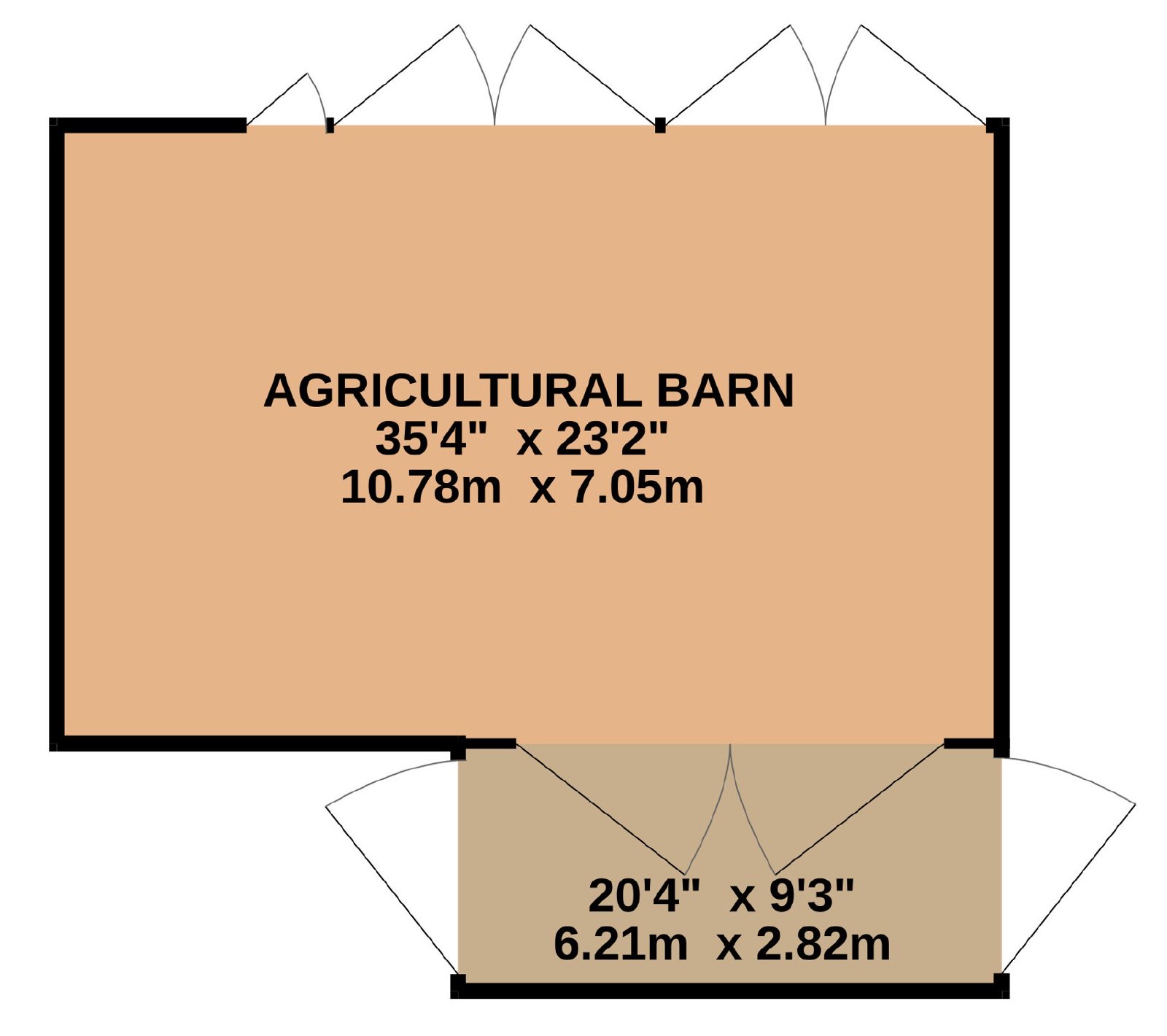 - Large agricultural purpose built barn.