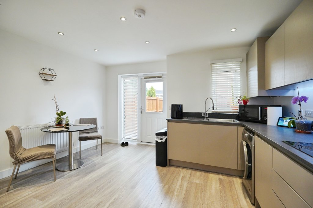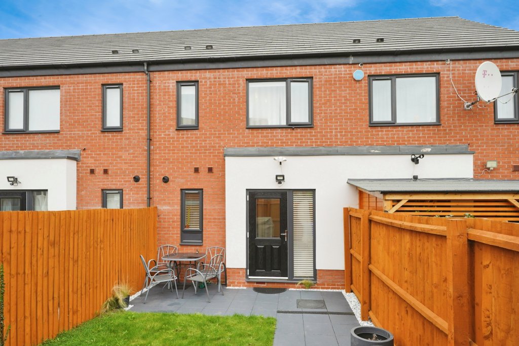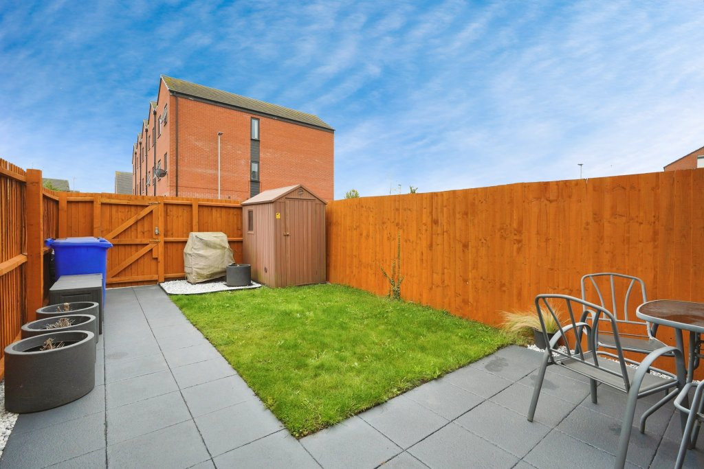 Stylish & Spacious 2-Bedroom Home with South-Facing Garden – No Upward Chain Available with no upward chain for a smoother, quicker purchase, this beautifully presented two-bedroom home offers generous living space, modern finishes, and a stunning south-facing landscaped garden – perfect for relaxing or entertaining. Situated in a sought-after and convenient location close to the A38, A50, town centre and hospital, this property combines comfort, style, and practicality. Entrance Hall Welcoming entrance hall with staircase to the first floor, central heating radiator, and door to: Lounge – 15'5" x 10'8" Bright and spacious living area featuring a UPVC double glazed box bay window to the front and central heating radiator. Kitchen Diner – 14'5" x 14'1" A standout feature of the home – this stylish, open-plan kitchen diner is fitted with a range of modern wall and base units and quality Smeg integrated appliances including an induction hob, oven, dishwasher, and fridge freezer. There is a concealed gas boiler, under-stairs storage, spot lighting, wood-effect flooring, and direct access to the garden via a UPVC rear door. Ground Floor WC Convenient downstairs cloakroom with tiled flooring, wall-mounted wash hand basin, tiled splashbacks, and radiator. First Floor: Bedroom One – 14'1" x 9'2" Spacious principal bedroom with two front-facing UPVC windows, radiator, and: En-Suite Shower Room – 7'8" x 3'7" Modern en-suite with shower cubicle, WC, wash basin, towel rail, and spot lighting. Bedroom Two – 14'1" x 11'2" A generous second double bedroom featuring two rear-facing UPVC windows with views over the garden, and a central heating radiator. Family Bathroom – 7'5" x 6'6" Beautifully finished with a panelled bath and overhead shower with screen, WC, wall-mounted basin, tiled splashbacks, flooring, and heated towel rail. Exterior: Rear Garden The south-facing rear garden has been thoughtfully landscaped for low maintenance and year-round enjoyment.