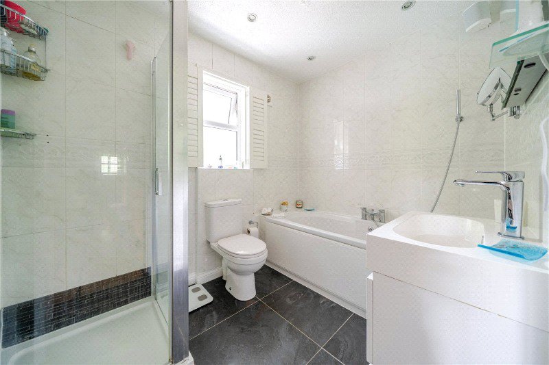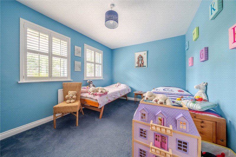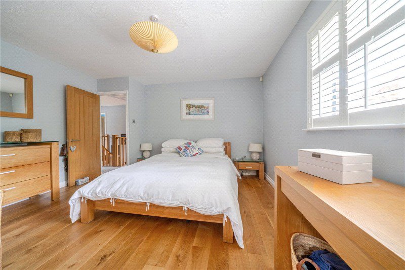 Upstairs, five well-proportioned bedrooms provide comfort and privacy for every member of the household. The luxurious principal suite includes a bespoke dressing area and a stylish en-suite with both bath and separate shower. A second bedroom also enjoys its own en-suite and built-in storage, while additional double bedrooms and a charming single room/nursery are served by a modern family bathroom with a large walk-in shower and tasteful stone tiling.