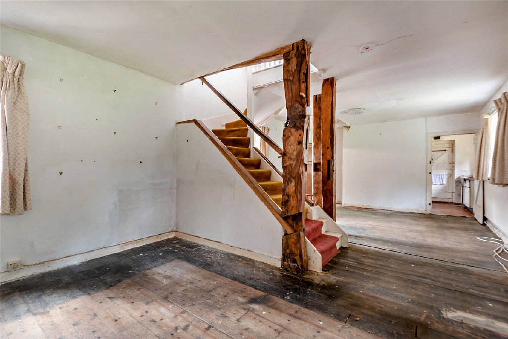 Bowdown Cottage offers an exciting opportunity for an incoming purchaser to put their own stamp on the property to create a beautiful family home in a stunning setting. The house itself is an attractive period house, possibly dating from the 1920s, and originally part of the neighbouring house. The house is connected to the former coach house/stables of Bowdown House by the west wing which comprises a workshop/old stable with first floor accommodation above which was added in 1974 to form guest bedrooms. The property offers spacious and very flexible accommodation with large characterful open reception spaces on the ground floor and 5/6 bedrooms upstairs which are accessed by 3 staircases. Upstairs could be configured in several ways and is currently laid out with a principal bedroom, dressing room and bathroom. A passageway leads through to a further 2 bedrooms served by a shower room and 2 other bedrooms and a bathroom are access via a staircase in the workshop. Due to the layout the property a self-contained annex could easily be created.