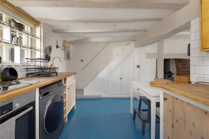Go through to the rear of the property where there is a kitchen/breakfast room which has a bespoke range of units with solid wood surfaces, an integrated oven and hob, and room for the fridge/freezer and plumbing for the washing machine.