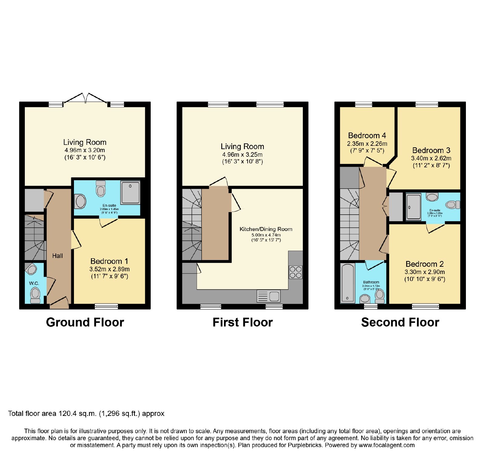 A beautifully presented four-bedroom townhouse offering spacious and versatile accommodation across three floors, ideal for modern family living. Located in a popular residential area of Bristol, this stylish home combines contemporary design with practical layout. The ground floor welcomes you with a bright entrance hall, leading to a generously sized bedroom with its own en-suite shower room—perfect for guests or multi-generational living. A convenient WC completes this level. On the first floor, you'll find a spacious living room ideal for relaxing or entertaining, alongside a modern kitchen/dining room equipped with integrated appliances and ample space for family meals. The second floor hosts three further bedrooms and a sleek family bathroom, offering comfort and flexibility for growing families or home office needs. With a total floor area of approximately 120.4 sq.m (1,296 sq.ft), this property provides plenty of room to live, work, and unwind. Externally, the home benefits from a private garden and allocated parking. Situated close to local amenities, schools, and excellent transport links, Preachers Walk is a fantastic opportunity for those seeking a spacious and well-connected home in a desirable Bristol location. Early viewing is highly recommended—contact us today to arrange yours!