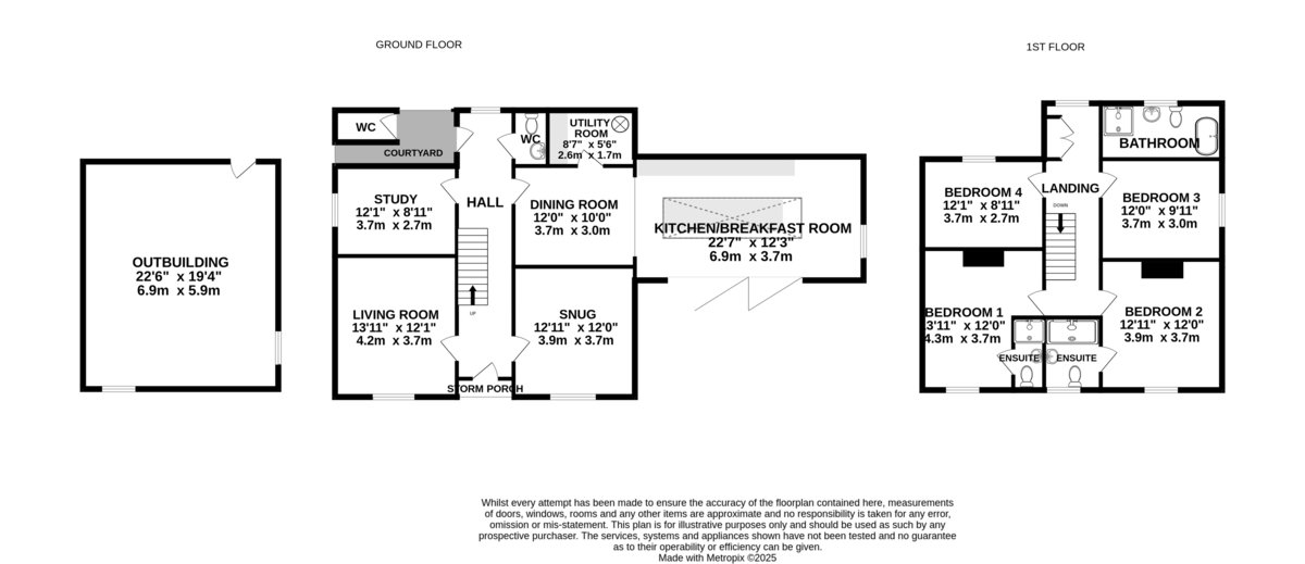 Upstairs, four well-proportioned bedrooms provide excellent family accommodation. The principal and second bedrooms each benefit from private en-suite facilities, while the remaining bedrooms are served by a stylish family bathroom.