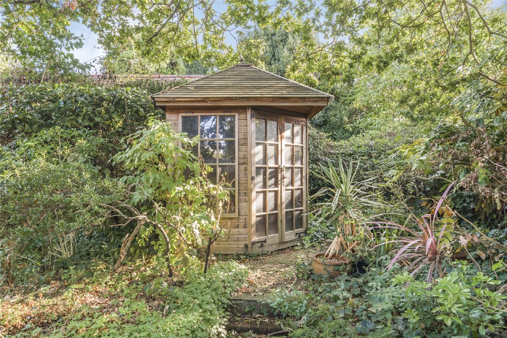 To the front, a private driveway provides off-road parking and leads to the garage. The rear garden is enhanced by a delightful summerhouse, while a useful storage shed is discreetly positioned to the side of the property and can be conveniently accessed from both the rear garden and the front, via the side of the garage..