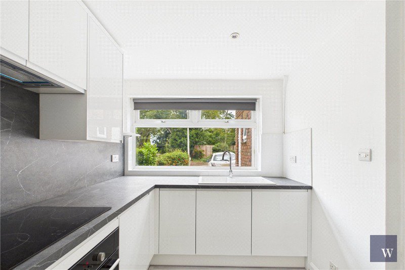A hallway with the guest WC leads into the bright kitchen/living area at the front—ideal for everyday life and easy entertaining. Beyond, a generous dining/reception spans the width of the house and opens to a landscaped, low-maintenance rear garden with raised planters and seating, perfect for effortless alfresco suppers. Within the close there is off-street parking for two cars, adding day-to-day convenience.