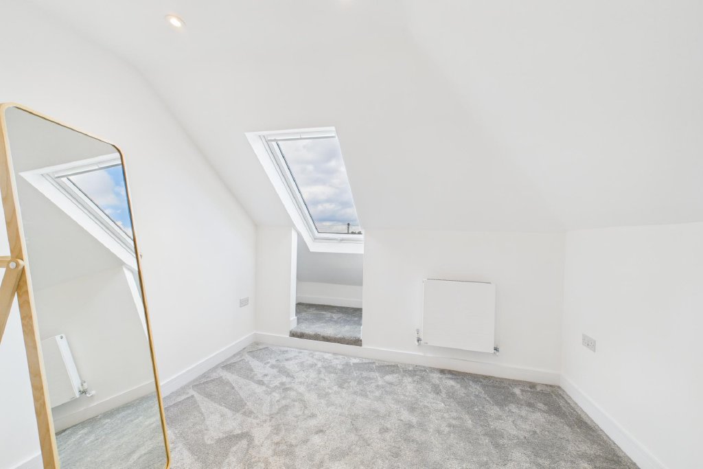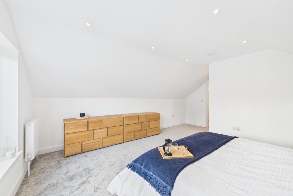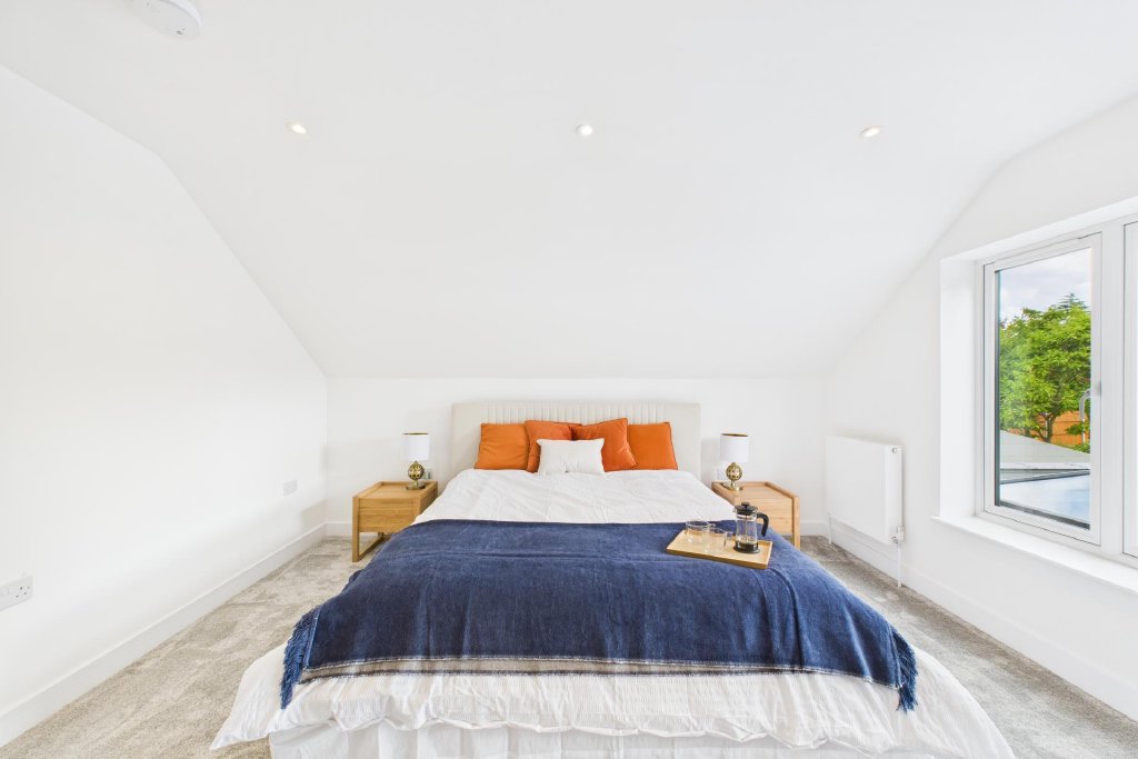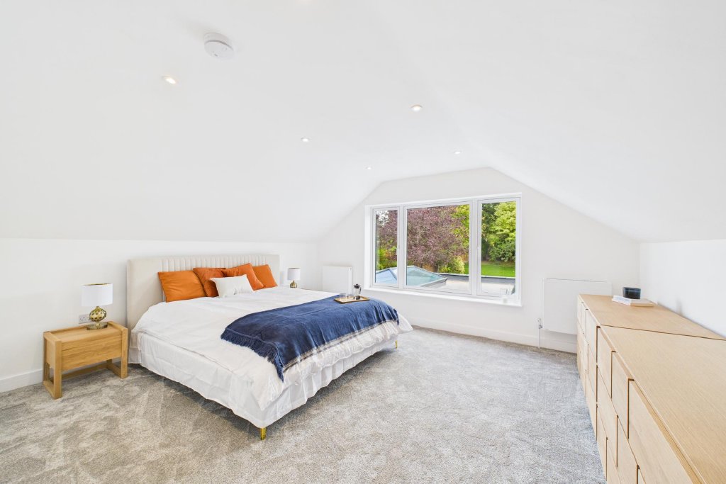 MASTER BEDROOM With sloping ceiling; two radiators; UPVC sealed unit double glazed window to rear aspect; LED recessed lighting; fitted carpet.