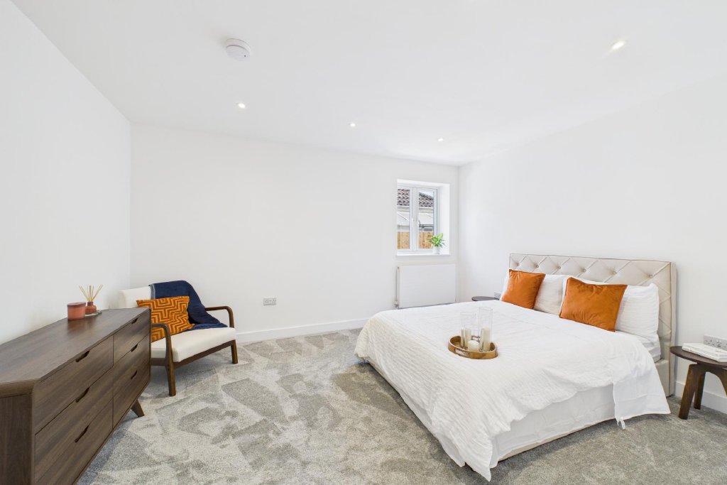 BEDROOM With UPVC sealed unit double glazed window side; recessed LED lighting; fitted carpet.