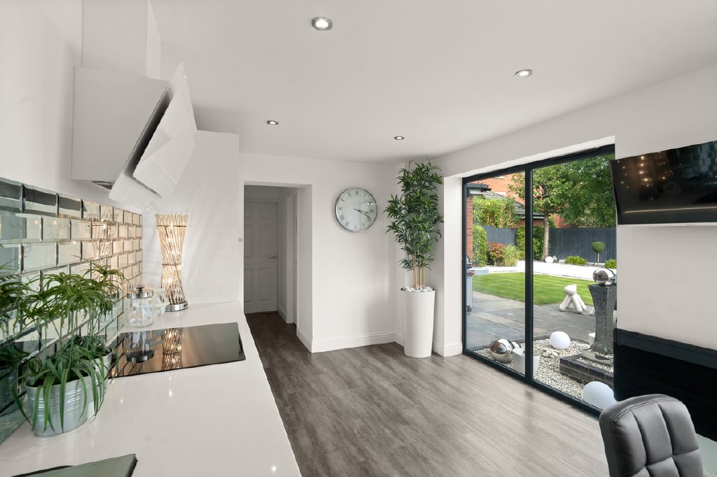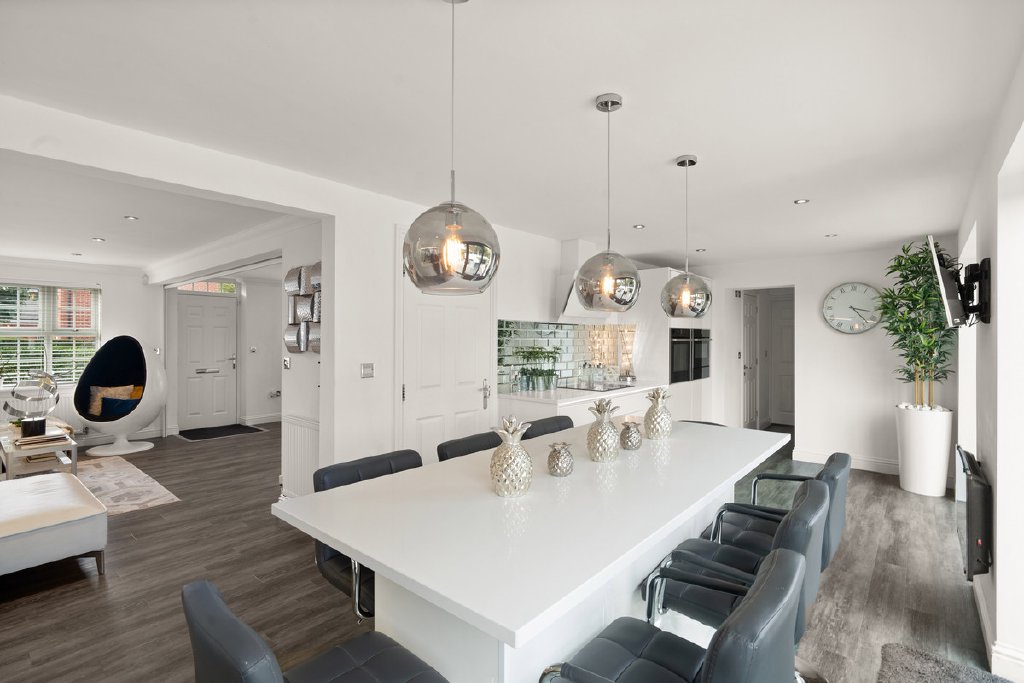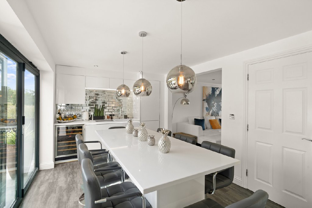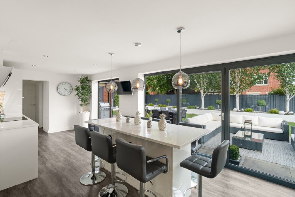 - Stunning open plan kitchen with quartz island & bi fold doors
