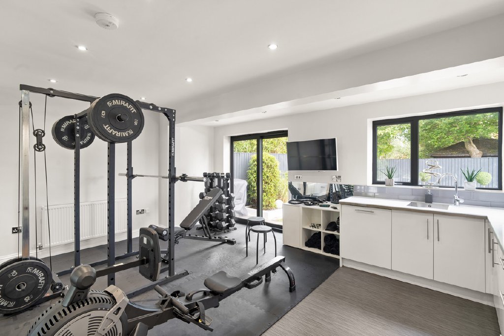 The attached annexe, created from the former double garage, offers superb flexibility. Currently arranged with a modern kitchen, lounge, double bedroom, shower room and home gym, this space is perfect for multi-generational living, guests, or independent teenagers.