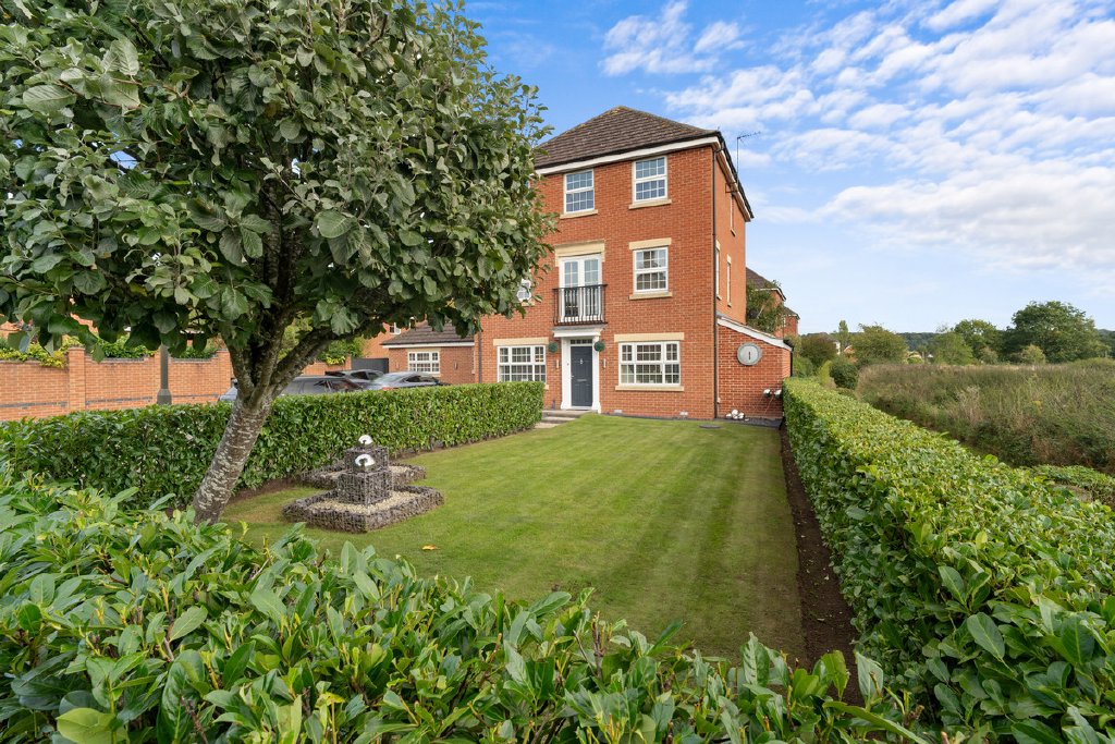 Outside: The property sits within a landscaped plot of approximately 0.13 acres. To the front, a double-width driveway with block-paved edging provides ample off-road parking. A brick-built bike/garden store offers practical storage.