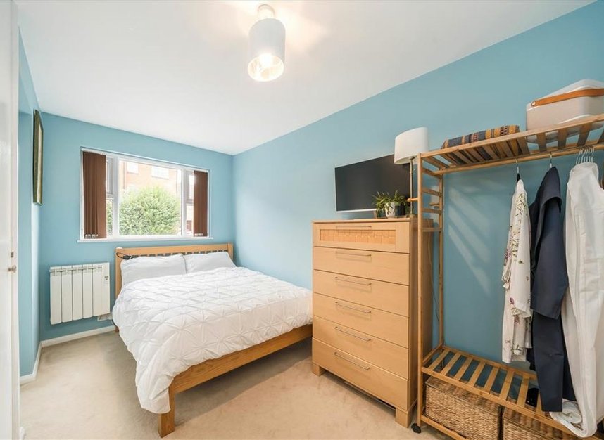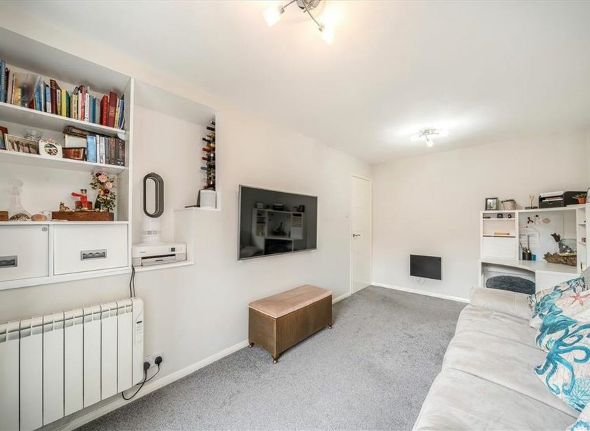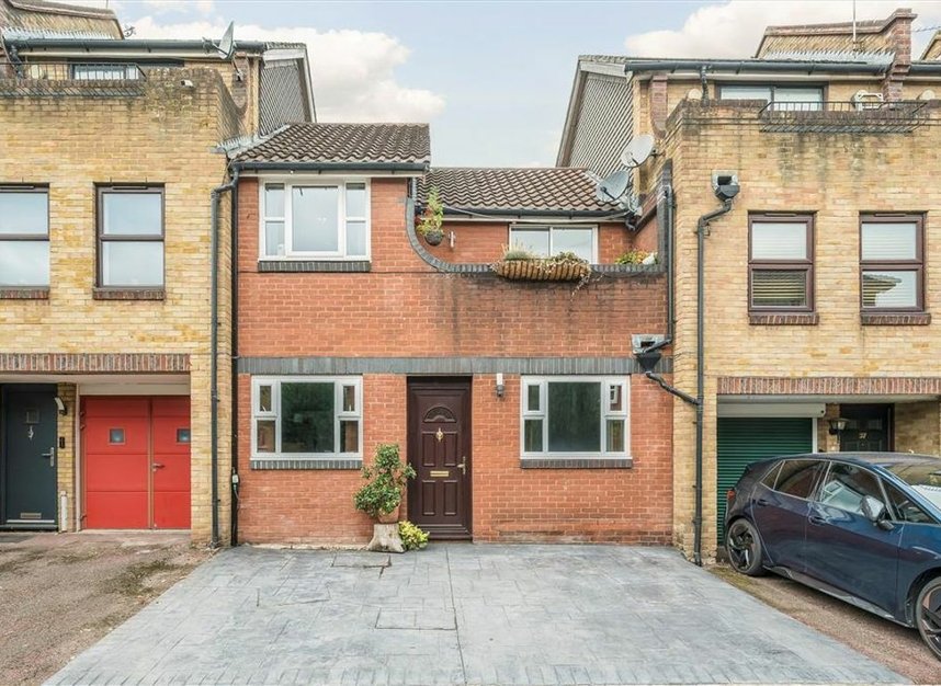 This stylish and well-maintained two-bedroom mid-terrace home is set within the secure, gated cul-de-sac of Greenland Mews. With private outdoor space, a modern interior, and exceptional transport links, the property offers comfortable and convenient living in a sought-after South East London location. Upon entering, you're welcomed into a hallway that leads upstairs to the main living area. On the ground floor are two generously sized double bedrooms, both featuring en-suite bathrooms. One of the bedrooms includes bespoke built-in joinery around the bed, along with an exceptionally large storage cupboard that doubles as a utility room. Upstairs, the bright reception room sits to the right of the landing. The current owner has also added custom-built shelving, creating smart additional storage without compromising the room's open feel. The space offers direct access to a private balcony perfect for morning coffee or evening wind-downs.