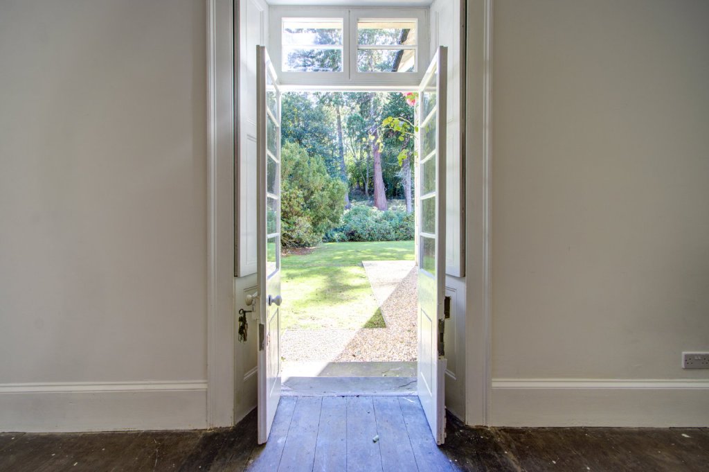 The kitchen is beautifully appointed with an extensive range of fitted cabinetry, granite worktops and integrated appliances, including the addition of a timeless Aga. Flagstone floors complement this spacious room, where there is ample space for a dining table for family meals. The sunny garden room transitions effortlessly from the kitchen, where large windows frame captivating views of the surrounding woodland and gardens. French doors open directly onto the outdoor patio, creating a harmonious connection between indoor and outdoor living, perfect for relaxed family mornings and enjoying a coffee. Completing the ground floor is a convenient WC and a well-equipped utility room, offering functionality and flexibility for modern family life.