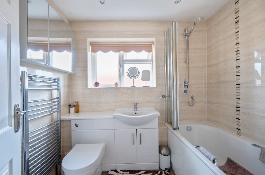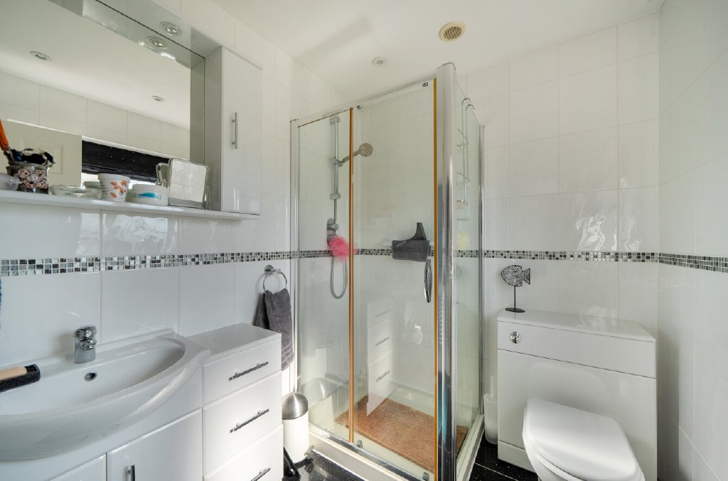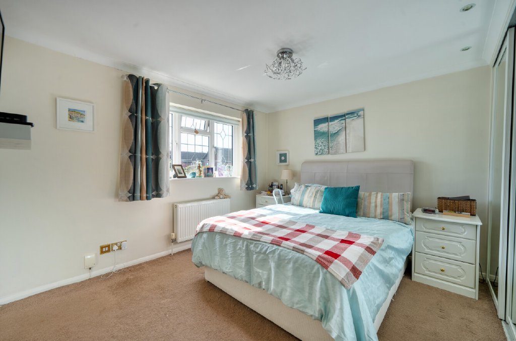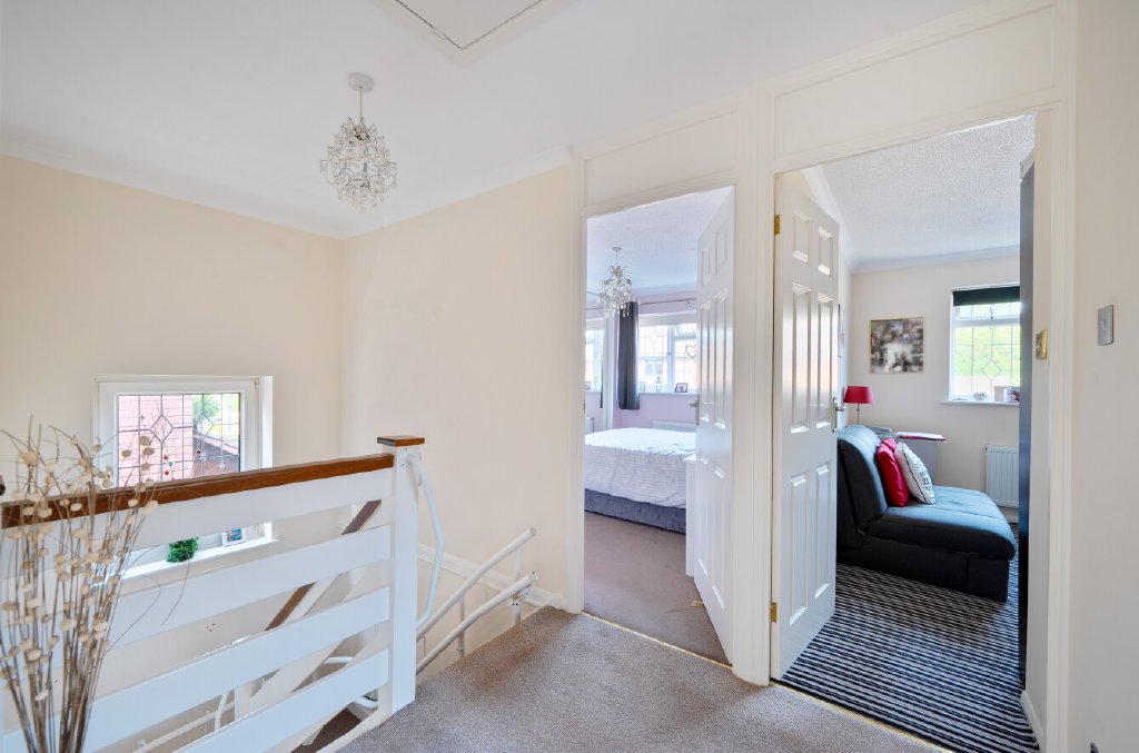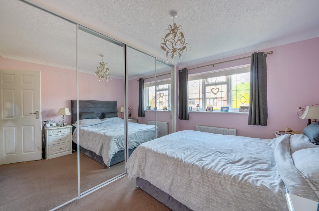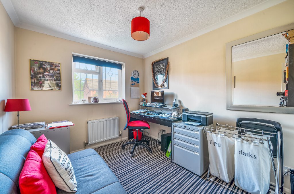 Upstairs, the home offers three generously sized bedrooms. The principal bedroom benefits from its own en-suite shower room, providing a private retreat for parents. Two further bedrooms are ideally suited for children, guests, or home working, served by a modern family bathroom.