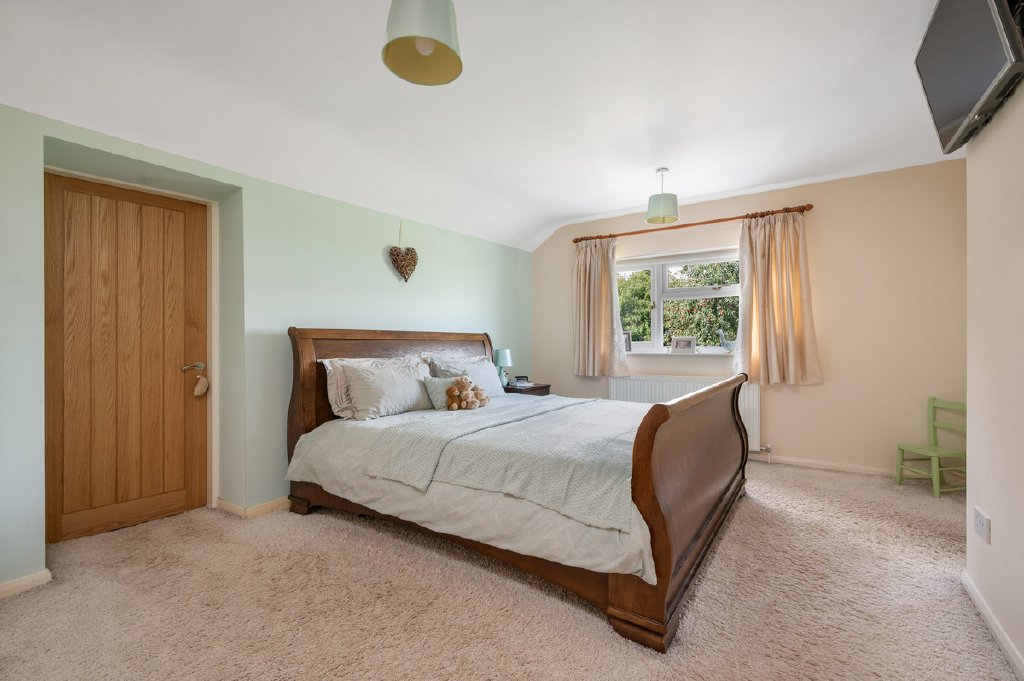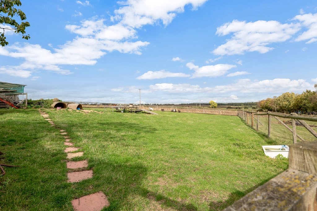 The gardens, mainly laid to lawn with a terrace area including a hot tub, extend to two sides of the house and are framed by a variety of mature trees, none of which are thought to be subject to Tree Preservation Orders (TPO). A post-and-rail fence separates the garden from the paddock where there is a field shelter and stable block with 3 small 6ftx6ft stalls currently used for Pygmy goats, with a further five-bar gate allowing vehicular access to the rear boundary and garages.