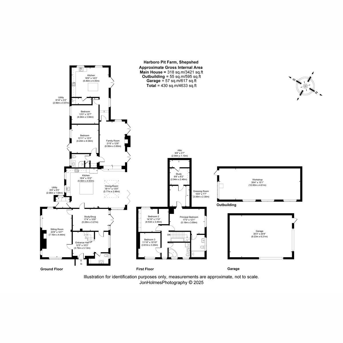Accessed through the oversized garage this large workshop/garage offers space for up to four vehicles.