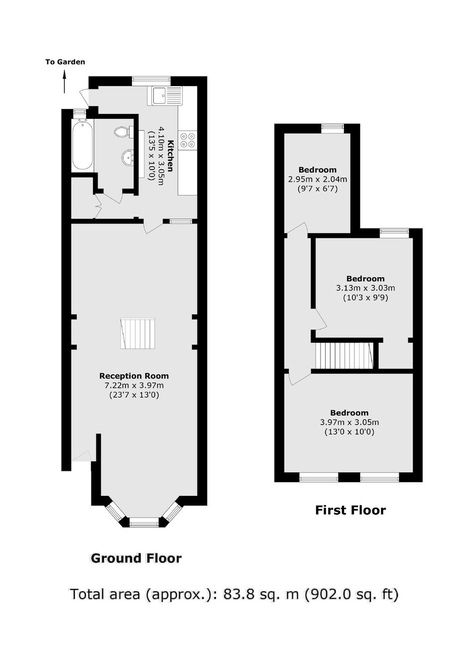 The property features a spacious through lounge and dining area, a separate kitchen, and a ground floor bathroom. Upstairs, there are three well-proportioned bedrooms. To the rear, there is a private, enclosed garden offering a quiet outdoor space.